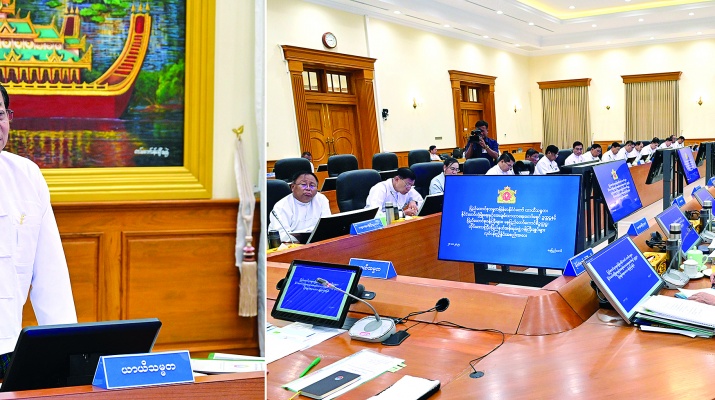 ရွေးကောက်ပွဲအောင်မြင်စွာကျင်းပနိုင်ရေးရွေးကောက်ပွဲနှင့်ပတ်သက်၍ ၂၀၂၀ပြည့်နှစ် ပါတီစုံဒီမို ကရေစီအထွေထွေ ရွေးကောက်ပွဲတွင် နည်းလမ်းမျိုးစုံဖြင့်မဲမသမာမှုများပြုလုပ်ခဲ့ခြင်းကြောင့်မိမိတို့အနေဖြင့် နိုင်ငံတော်၏တာဝန်များကိုယူခဲ့ရသည့်အစိုးရတစ်ရပ်ဖြစ်ကြောင်း၊ထို့ကြောင့် လာမည့်ရွေးကောက်ပွဲတွင် မဲမသမာမှုများ ဖြစ်ပေါ်မှုမရှိစေရေး Myanmar Electronic Voting Machine(MEVM)ကို အသုံးပြုဆောင်ရွက်သွားမည်ဖြစ်ကြောင်း၊ (MEVM) စက်များသည် မဲမသမာမှုမည်ကဲ့သို့မျှ ဆောင်ရွက်နိုင်မည်မဟုတ်ကြောင်း၊မှန်ကန် သည့်ရွေးကောက်ပွဲ၊ မဲမသမာမှုမရှိသည့်ရွေးကောက်ပွဲ၊ သိက္ခာရှိသည့်ရွေးကောက်ပွဲ ဖြစ်စေရေး မဲစာရင်းများမှန်ကန်မှုရှိရေးသည်အဓိကကျကြောင်း၊ ထို့ကြောင့် ဝန်ကြီး ဌာနများ၊ တိုင်းဒေသကြီးနှင့်ပြည်နယ်ဝန်ကြီးချုပ်များအနေဖြင့် မဲစာရင်းများပြုစုရာတွင် အမှားအယွင်းမရှိစေရေး၊မဲမသမာမှုများမရှိစေရေး အလေးထား ဆောင်ရွက် သွားရန်လိုကြောင်း၊ ယနေ့မှစ၍ မဲဆွယ်စည်းရုံးမှုကာလစတင်မည်ဖြစ်ပြီးပါတီများ အလိုက် မဲဆွယ်ခြင်းလုပ်ငန်းများကိုစတင်ဆောင်ရွက်ကြတော့မည်ဖြစ်ကြောင်း၊မိမိတို့အနေဖြင့် ရွေးကောက်ပွဲကို အောင်မြင်စွာကျင်းပပြီးစီးပြီးတည်ငြိမ်သည့်အစိုးရတစ်ရပ်ထွက်ပေါ်လာစေရေးမျှော်မှန်းဆောင်ရွက်ပေးသွားရမည်ဖြစ်ကြောင်း။