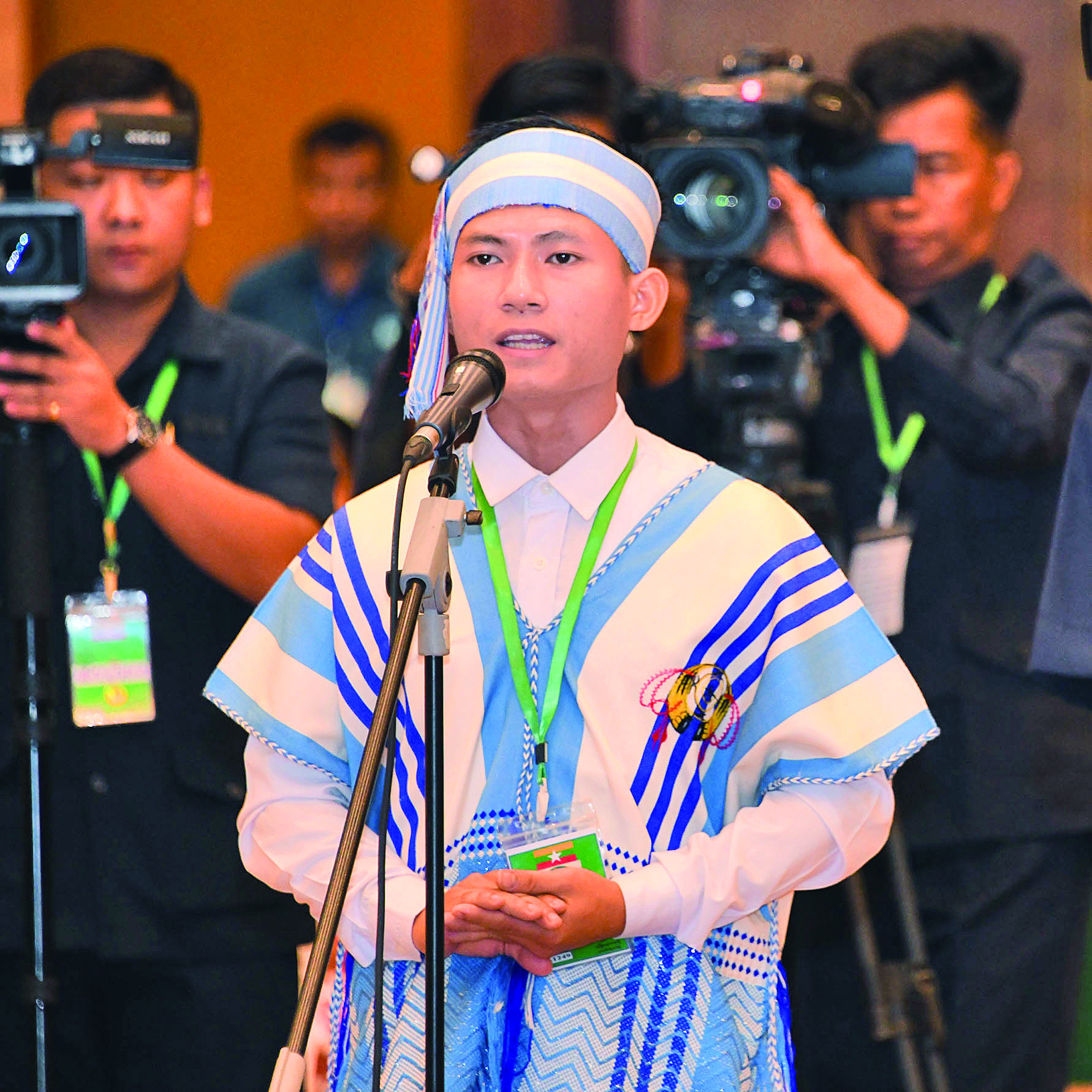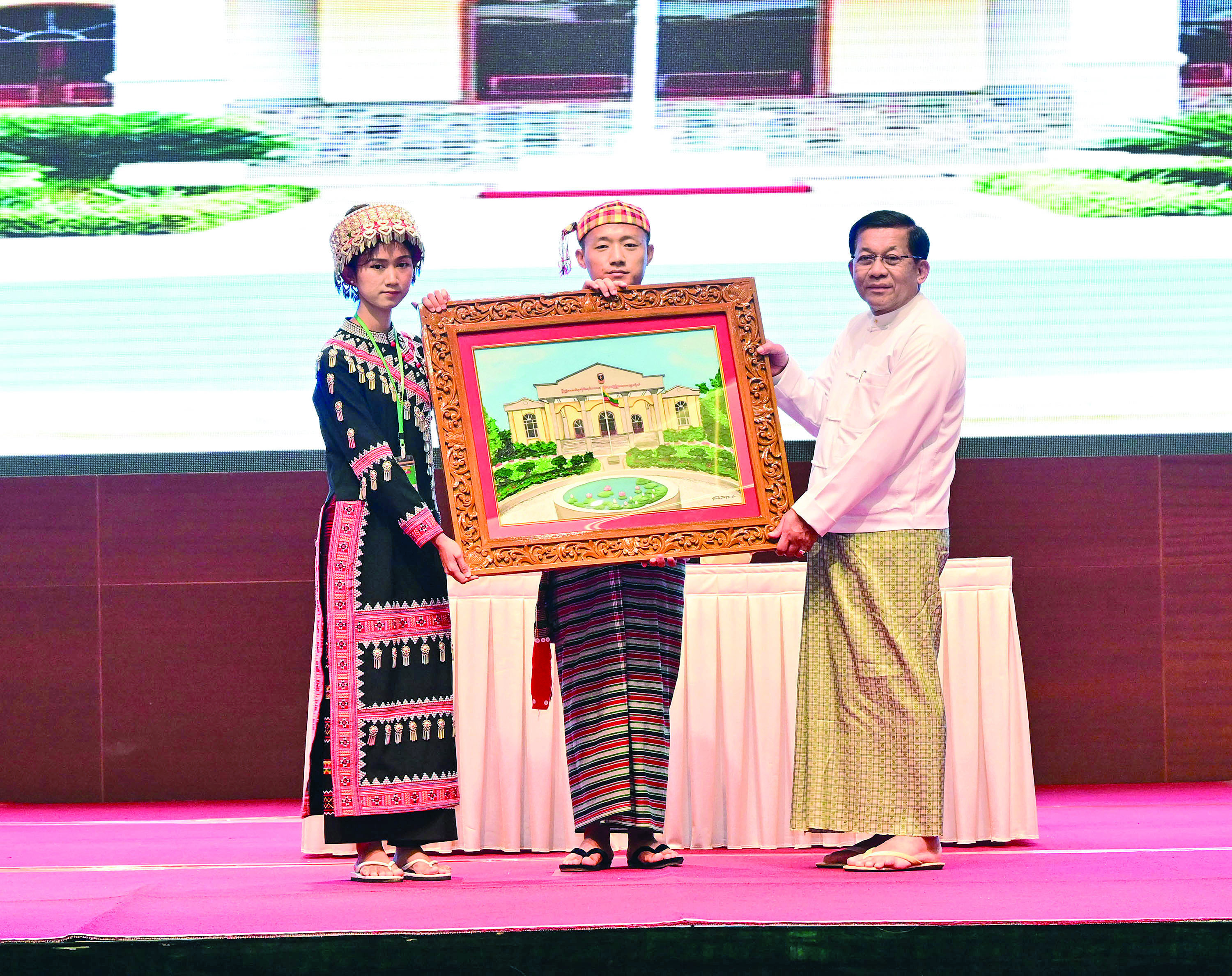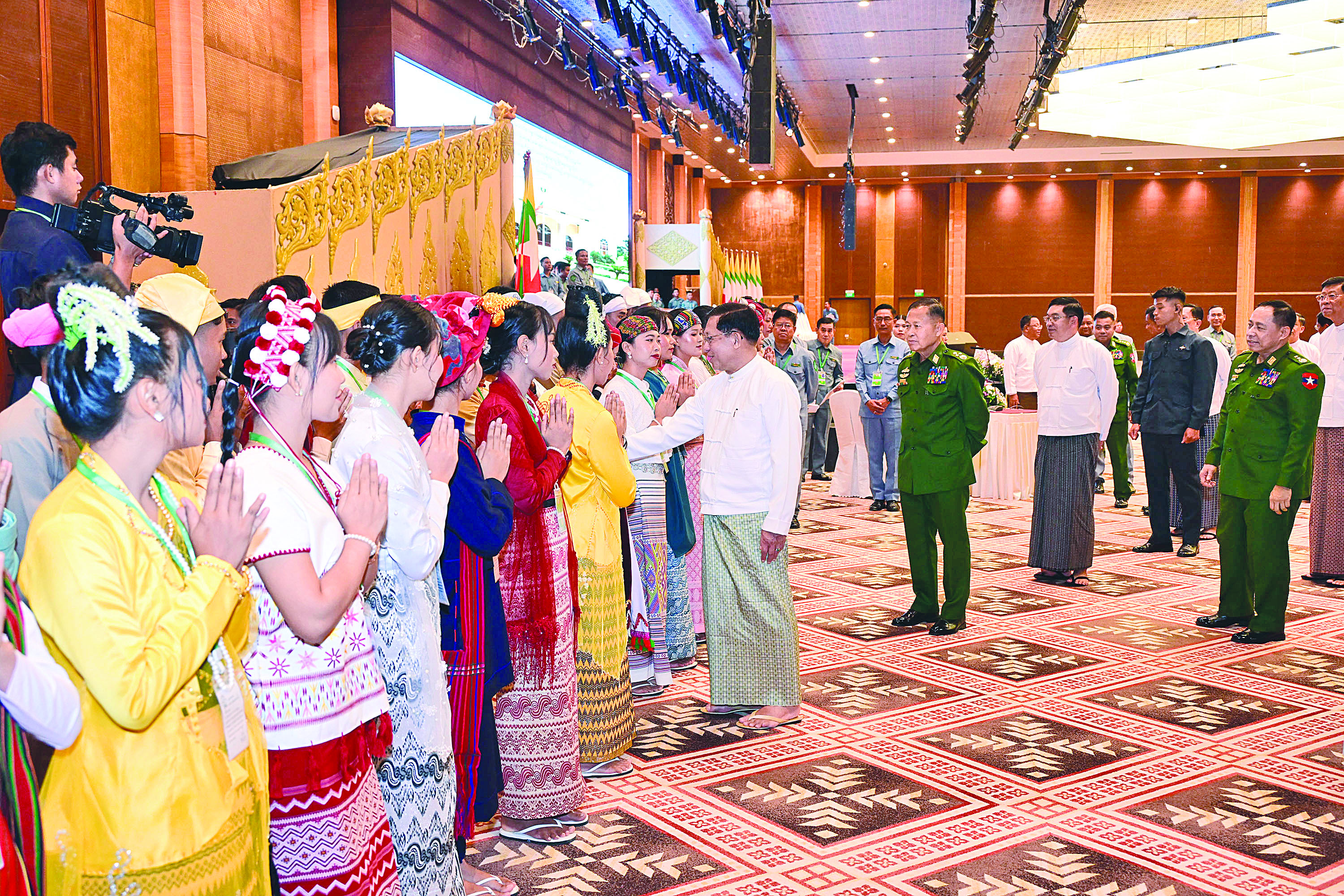 ပြည်ထောင်စုသမ္မတမြန်မာနိုင်ငံတော် ယာယီသမ္မတ နိုင်ငံတော်လုံခြုံရေးနှင့်အေးချမ်းသာယာရေးကော်မရှင်ဥက္ကဋ္ဌ ဗိုလ်ချုပ်မှူးကြီးမင်းအောင်လှိုင်သည် ပြည်ထောင်စုတိုင်းရင်းသားလူမျိုးများဖွံ့ဖြိုးရေးတက္ကသိုလ် ပညာရေးဘွဲ့ ၅ နှစ်သင်တန်း အမှတ်စဉ်(၇)မှ ကျောင်းသား၊ ကျောင်းသူများကို ယနေ့နံနက်ပိုင်းတွင် နေပြည်တော်ရှိ မြန်မာအပြည်ပြည်ဆိုင်ရာ ကွန်ဗင်းရှင်း ဗဟိုဌာန(၁)(MICC-1)၌ တွေ့ဆုံအမှာစကားပြောကြားသည်။