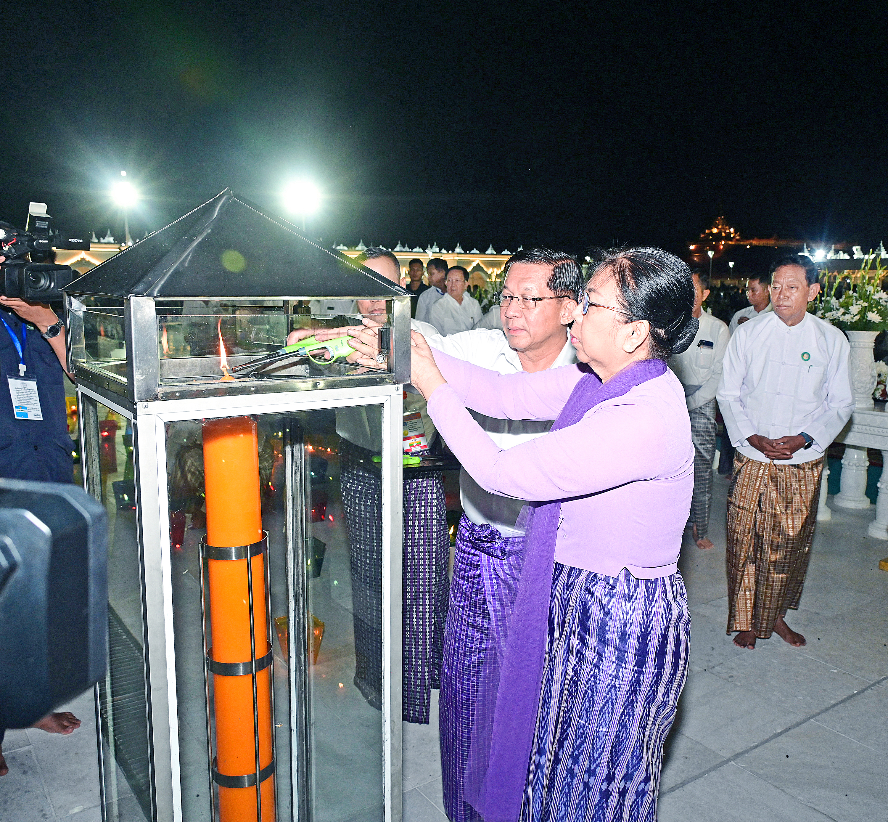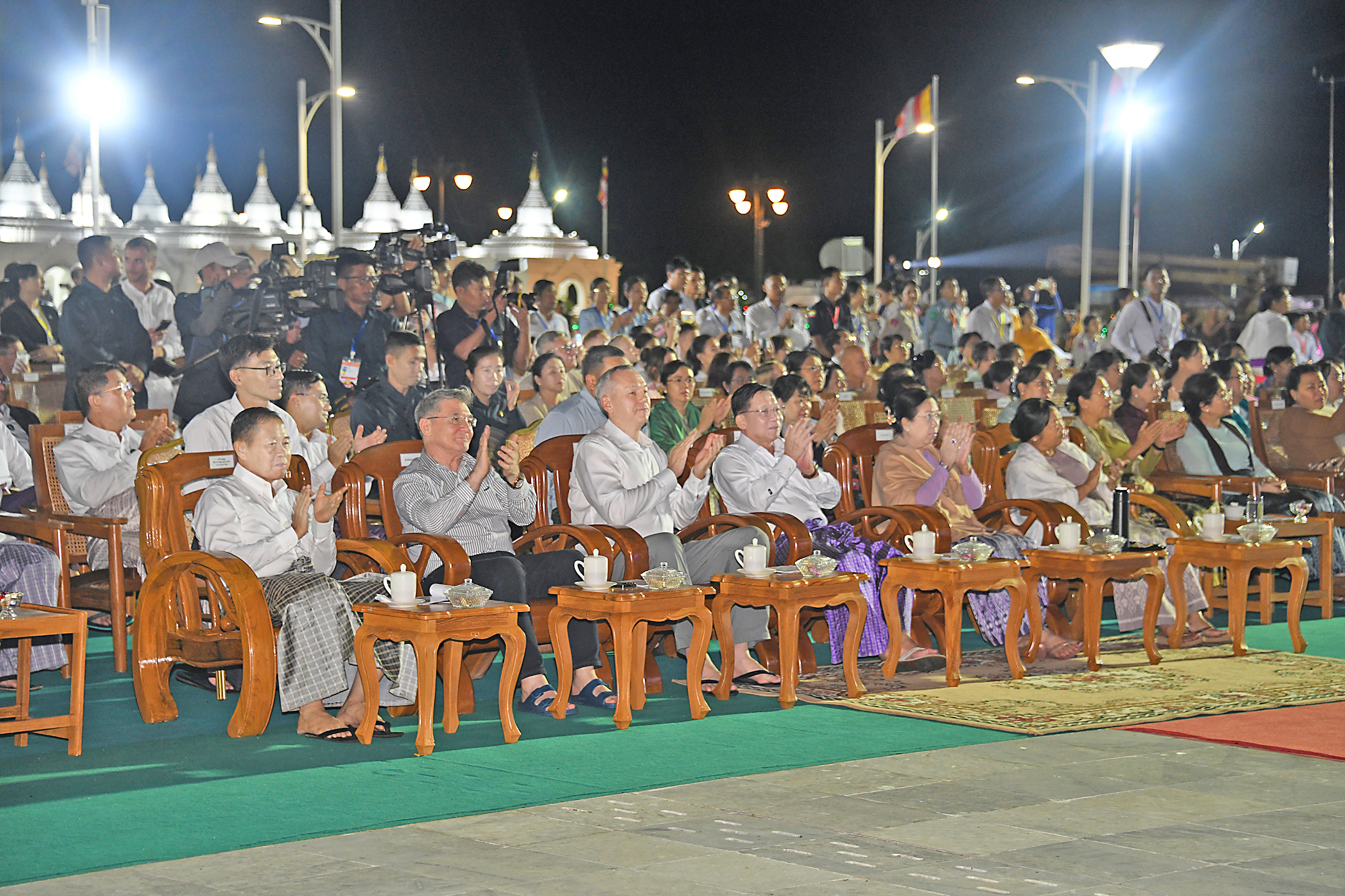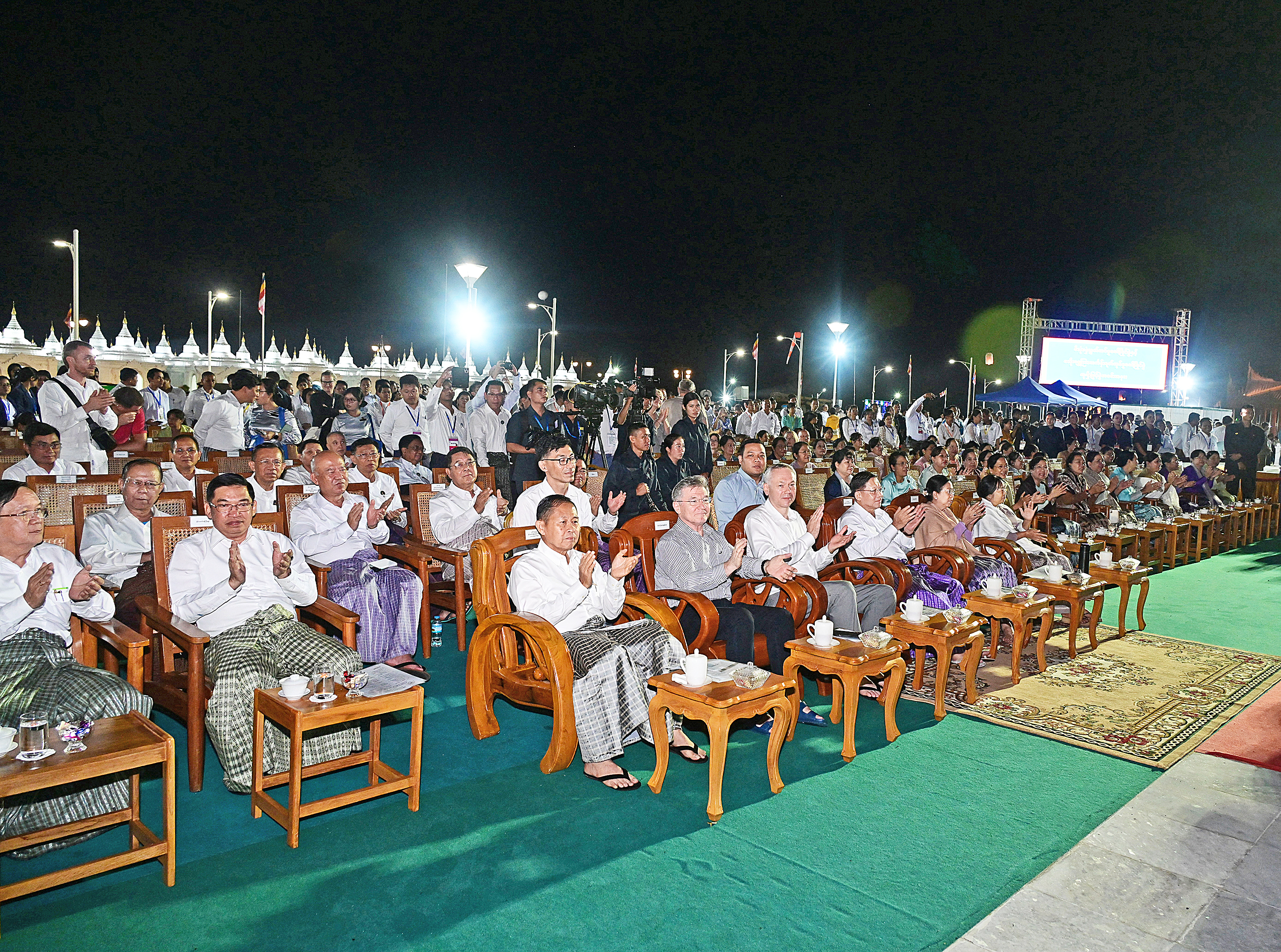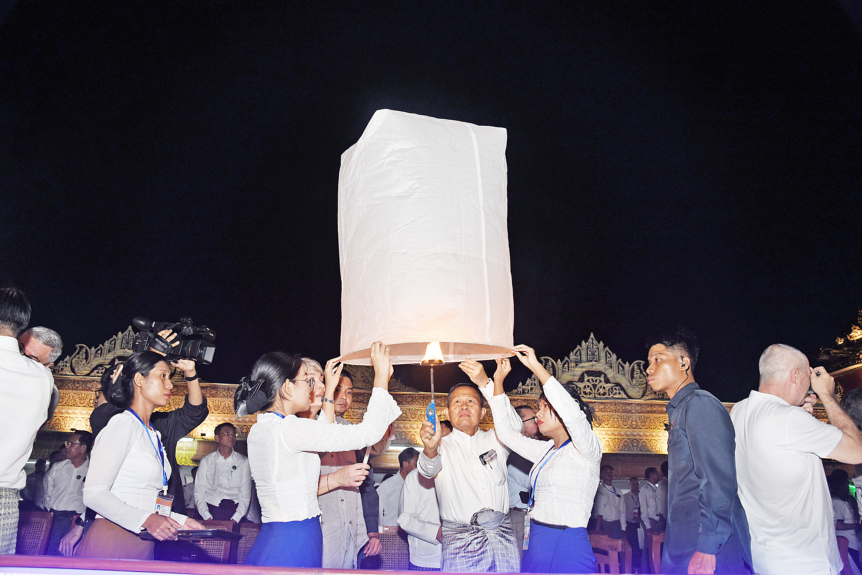 ထို့နောက် နိုင်ငံတော်ယာယီသမ္မတ နိုင်ငံတော်လုံခြုံရေးနှင့် အေးချမ်းသာယာရေးကော်မရှင်ဥက္ကဋ္ဌနှင့်ဇနီး၊ အခမ်းအနားတက်ရောက်လာကြသူများသည် စိန်နားပန် မီးပုံးပျံလွှတ်တင်မှုနှင့် ညမီးကြီးမီးပုံပျံများ လွှတ်တင်ပူဇော်ယှဉ်ပြိုင်နေမှုများကိုကြည့်ရှုအားပေးကြသည်။
