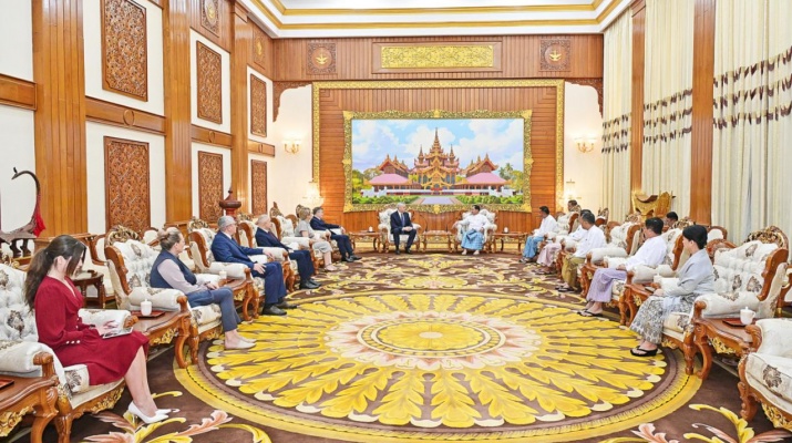 ပြည်ထောင်စုသမ္မတမြန်မာနိုင်ငံတော် ယာယီသမ္မတ နိုင်ငံတော်လုံခြုံရေးနှင့်အေးချမ်းသာယာရေးကော်မရှင်ဥက္ကဋ္ဌ ဗိုလ်ချုပ်မှူးကြီးမင်းအောင်လှိုင်ထံသို့ ရုရှားဖက်ဒရေးရှင်းနိုင်ငံ၊ နိုဗိုစီဗစ်ဒေသအုပ်ချုပ်ရေးမှူး H.E.Mr. Andrey Aleksandrovich Travnikov ဦးဆောင်သောကိုယ်စားလှယ်အဖွဲ့က ယနေ့နံနက်ပိုင်းတွင် လာရောက်ဂါရဝပြုတွေ့ဆုံသည်။
