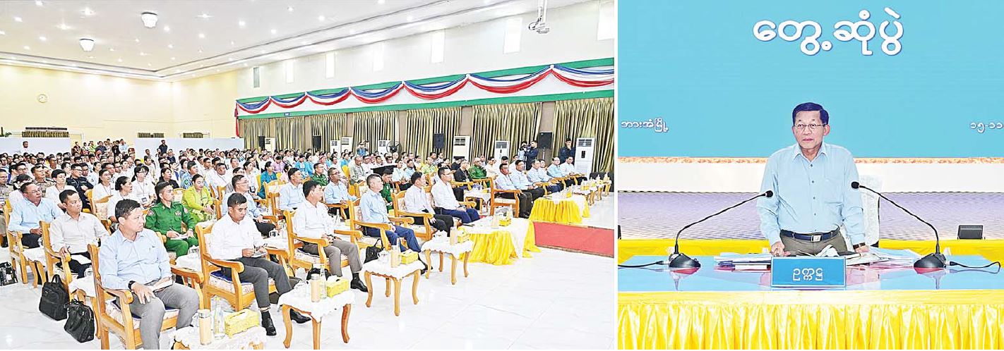 ကရင်ပြည်နယ်သည် နိုင်ငံလွတ်လပ်ရေးရပြီးချိန်ကတည်းက လက်နက်ကိုင် သောင်းကျန်းမှုများကြောင့် တည်ငြိမ်အေးချမ်းမှုများပျက်ယွင်းပြီး ပြည်နယ်အတွင်း နေထိုင်သည့် ပြည်သူများထိခိုက်သကဲ့သို့ နိုင်ငံတော်အနေဖြင့်လည်း ထိခိုက်မှုများရှိကြောင်း၊ ကရင်ပြည်နယ်တည်ငြိမ်အေးချမ်းမှု ပျက်ယွင်းအောင်လုပ်ဆောင်နေသူများသည် ကရင်ပြည်နယ်အတွင်းရှိ လက်နက်ကိုင်အဖွဲ့အစည်းများပင်ဖြစ်ကြောင်း၊ တည်ငြိမ်အေးချမ်းမှုရှိမှသာလျှင် ပညာသင်ကြားနိုင်မည်၊ ပြည်သူများ၏ ကျန်းမာရေးစောင့်ရှောက်မှုလုပ်ငန်းများကိုဆောင်ရွက်နိုင်မည်၊ ဒေသဖွံ့ဖြိုးတိုးတက်ရေးလုပ်ငန်းများကို ဆောင်ရွက်နိုင်မည်ဖြစ်ကြောင်း၊ ထို့ကြောင့် ပြည်နယ်၏ဖွံ့ဖြိုးတိုးတက်မှုကို ဖျက်စီးနေသည့် တည်ငြိမ်အေးချမ်းမှု ပျက်ယွင်းအောင်ဆောင်ရွက်နေမှုများကို ပြည်နယ်အတွင်းနေထိုင်ကြသူများအနေဖြင့် နည်းလမ်းပေါင်းစုံဖြင့်ကာကွယ်ဆောင်ရွက်သွားကြရန်လိုကြောင်း၊ နိုင်ငံတော်အနေဖြင့်ကရင်ပြည်နယ်အတွင်းဒေသတည်ငြိမ်အေးချမ်းမှုပျက်ယွင်းအောင်လုပ်ဆောင်နေမှုများကို ရှင်းလင်းဆောင်ရွက်လျက်ရှိကြောင်း၊ အွန်လိုင်းငွေကြေးလိမ်လည်မှုနှင့် အွန်လိုင်းလောင်းကစားလုပ်ငန်းများ လုပ်ဆောင်လျက်ရှိသည့်မြန်မာ-ထိုင်းနယ်စပ်အနီးရှိ KK park နေရာအား တပ်မတော်အနေဖြင့် ရှင်းလင်းဆောင်ရွက်နေပြီး အမျိုးသားရေးတာဝန်တစ်ရပ်အနေဖြင့် အပြီးပြတ်ရှင်းလင်းဆောင်ရွက်သွားမည်ဖြစ်ကြောင်း။