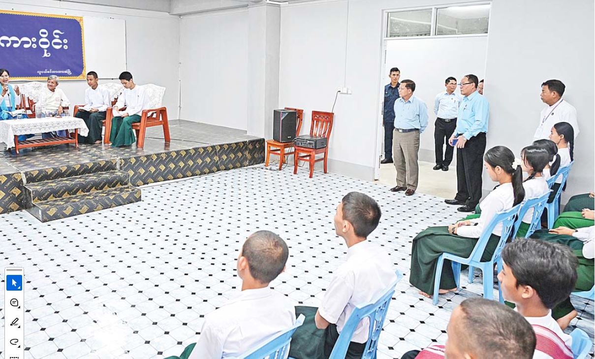ထို့နောက် နိုင်ငံတော်ယာယီသမ္မတ နိုင်ငံတော်လုံခြုံရေးနှင့် အေးချမ်းသာယာ ရေးကော်မရှင်ဥက္ကဋ္ဌနှင့်အဖွဲ့ဝင်များသည်လူငယ်စင်တာအတွင်း လူငယ်များ Indoor Game များ လေ့ကျင့်နေမှု၊ လူငယ်စကားဝိုင်း ပြုလုပ်နေမှု၊ အိမ်တွင်းမှုလုပ်ငန်းများ သင်ကြားဆောင်ရွက်နေမှု၊ ဂီတခန်းအတွင်း ဂီတပညာများသင်ကြားပေးနေမှု၊ ပန်းချီသင်တန်းသင်ကြားပို့ချပေးနေမှု၊ ကွန်ပျူတာနည်းပညာများ သင်ကြားပြသပေးနေမှု၊ စာကြည့်တိုက်အတွင်း လူငယ်များစာပေဖတ်ရှုလေ့လာနေမှုများနှင့် အိပ်ခန်းများနှင့် စားသောက်ခန်းတို့အတွင်း လှည့်လည်ကြည့်ရှုစစ်ဆေးပြီး တာဝန်ရှိသူများ၏ တင်ပြချက်များအပေါ် လိုအပ်သည်များလမ်းညွှန်မှာကြားသည်။