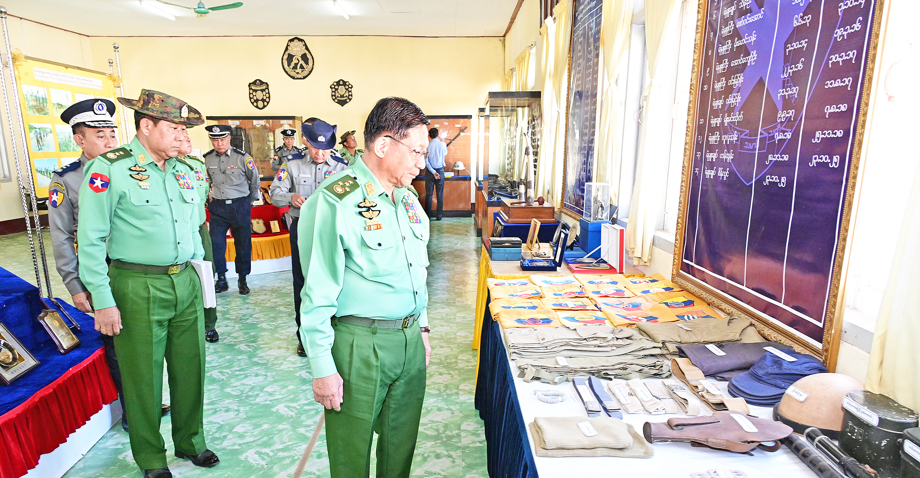 ထို့နောက် နိုင်ငံတော်ယာယီသမ္မတ နိုင်ငံတော်လုံခြုံရေးနှင့်အေးချမ်းသာယာရေး ကော်မရှင်ဥက္ကဋ္ဌနှင့် အဖွဲ့ဝင်များသည် သင်တန်းကျောင်းပြတိုက်အတွင်း ခင်းကျင်း ပြသထားသည့် ကိုလိုနီခေတ်တွင် အသုံးပြုခဲ့သည့် ရဲတပ်ဖွဲ့အသုံးအဆောင်ပစ္စည်းများနှင့် ရဲတပ်ဖွဲ့တံဆိပ်၊ ပခုံးတံဆိပ်များ၊ လက်ရှိအသုံးပြုလျက်ရှိသည့် ရဲတပ်ဖွဲ့အသုံးအဆောင်ပစ္စည်းများ၊ အဆင့်တံဆိပ်များနှင့်ဝတ်စုံများ၊ ရဲတပ်ဖွဲ့သုံးလက်နက်များ၊ မှတ်တမ်းဓာတ်ပုံများနှင့်ပြည်ပနိုင်ငံများမှပေးပို့သည့် အမှတ်တရပစ္စည်းများအားလှည့်လည်ကြည့်ရှုစစ်ဆေးပြီးတာဝန်ရှိသူများ၏တင်ပြချက်များအပေါ် လိုအပ်သည်များ လမ်းညွှန်မှာကြားသည်။