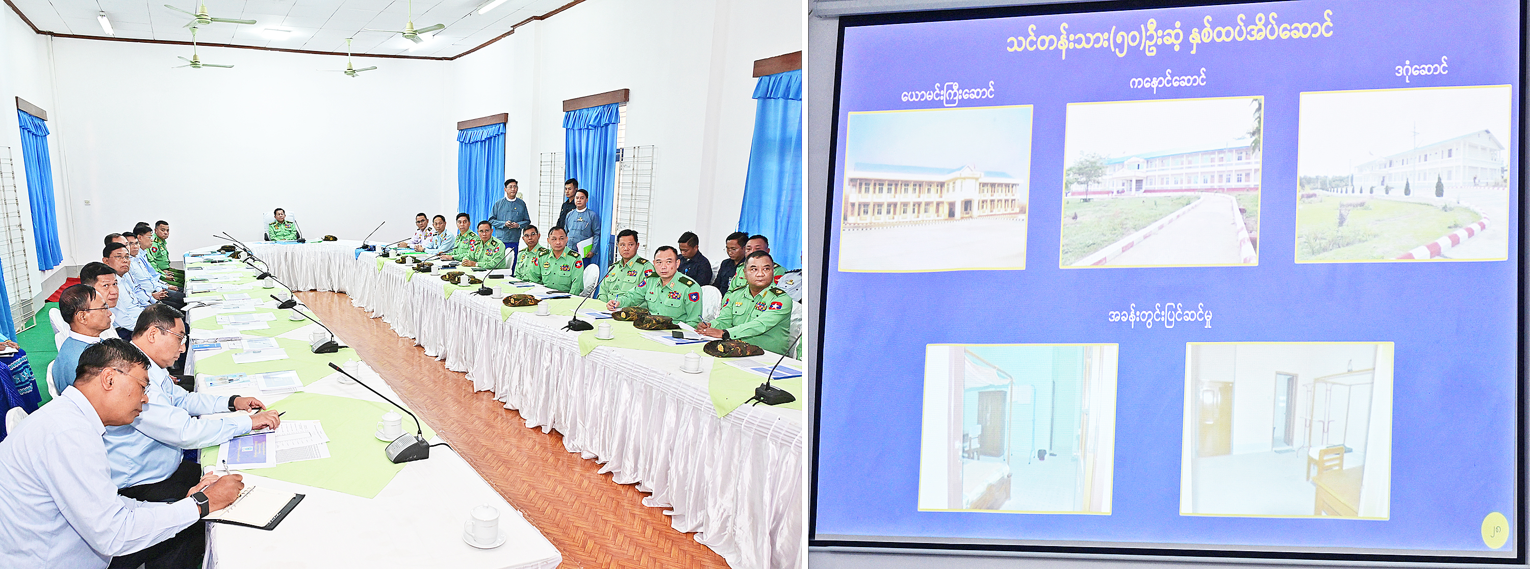 ဆက်လက်ပြီး နိုင်ငံတော်ယာယီသမ္မတနိုင်ငံတော်လုံခြုံရေးနှင့် အေးချမ်းသာယာရေးကော်မရှင်ဥက္ကဋ္ဌနှင့်အဖွဲ့ဝင်များသည်ရဲအရာရှိလေ့ကျင့်ရေးကျောင်း(ဇီးပင်ကြီး)သို့ရောက်ရှိရာ လေ့ကျင့်ရေးဌာနချုပ်ရုံး အစည်းအဝေးခန်းမ၌ ကော်မရှင်အဖွဲ့ဝင် ပြည်ထဲရေးဝန်ကြီးဌာန ပြည်ထောင်စုဝန်ကြီး ဒုတိယဗိုလ်ချုပ်ကြီးထွန်းထွန်းနောင်က ရဲအရာရှိများအား လေ့ကျင့်ပေးနေသည့်ကျောင်းများနှင့် အခြားအဆင့်ရဲတပ်ဖွဲ့ဝင်များအား လေ့ကျင့်ပေးနေသည့်ကျောင်းများ၏သမိုင်းအကျဉ်း၊ ဗဟိုမီးသတ်သင်တန်းကျောင်းသမိုင်းအကျဉ်းကို လည်းကောင်း၊ ရဲအရာရှိလေ့ကျင့်ရေးကျောင်း(ဇီးပင်ကြီး)ကျောင်းအုပ်ကြီးနှင့်ဗဟိုမီးသတ်သင်တန်းကျောင်း(ပြင်ဦးလွင်)ကျောင်းအုပ်ကြီးတို့ကသင်တန်းကျောင်းဆိုင်ရာအချက် အလက်များ၊ သင်တန်းများအလိုက် ဖွင့်လှစ်သင်ကြားပေးနိုင်ခဲ့မှု၊စာပေပညာ၊ စစ်ပညာနှင့် ကြံ့ခိုင်ရေးဘာသာရပ်များသင်ကြားလေ့ကျင့်ပေးလျက်ရှိမှု၊သင်တန်းကျောင်းများအလိုက်ဝန်ထမ်းများခန့်အပ်ထားရှိမှု၊စိုက်ပျိုးမွေးမြူရေးလုပ်ငန်းများဆောင်ရွက်ထားရှိမှုနှင့်သက်သာချောင်ချိရေးဆောင်ရွက်ပေးနိုင်မှု၊ သောက်သုံးရေနှင့် လျှပ်စစ်မီးရရှိမှုအခြေအနေများ၊ သင်တန်းများအလိုက် လက်တွေ့လေ့ကျင့်ခန်းများဆောင်ရွက်လျက်ရှိမှုနှင့် လေ့ကျင့်ရေးအဆောက်အအုံများ၊ အထောက်အကူပြုယာဉ်များဆောင်ရွက်ထားရှိမှု အခြေအနေများကိုလည်းကောင်း ရှင်းလင်းတင်ပြကြသည်။