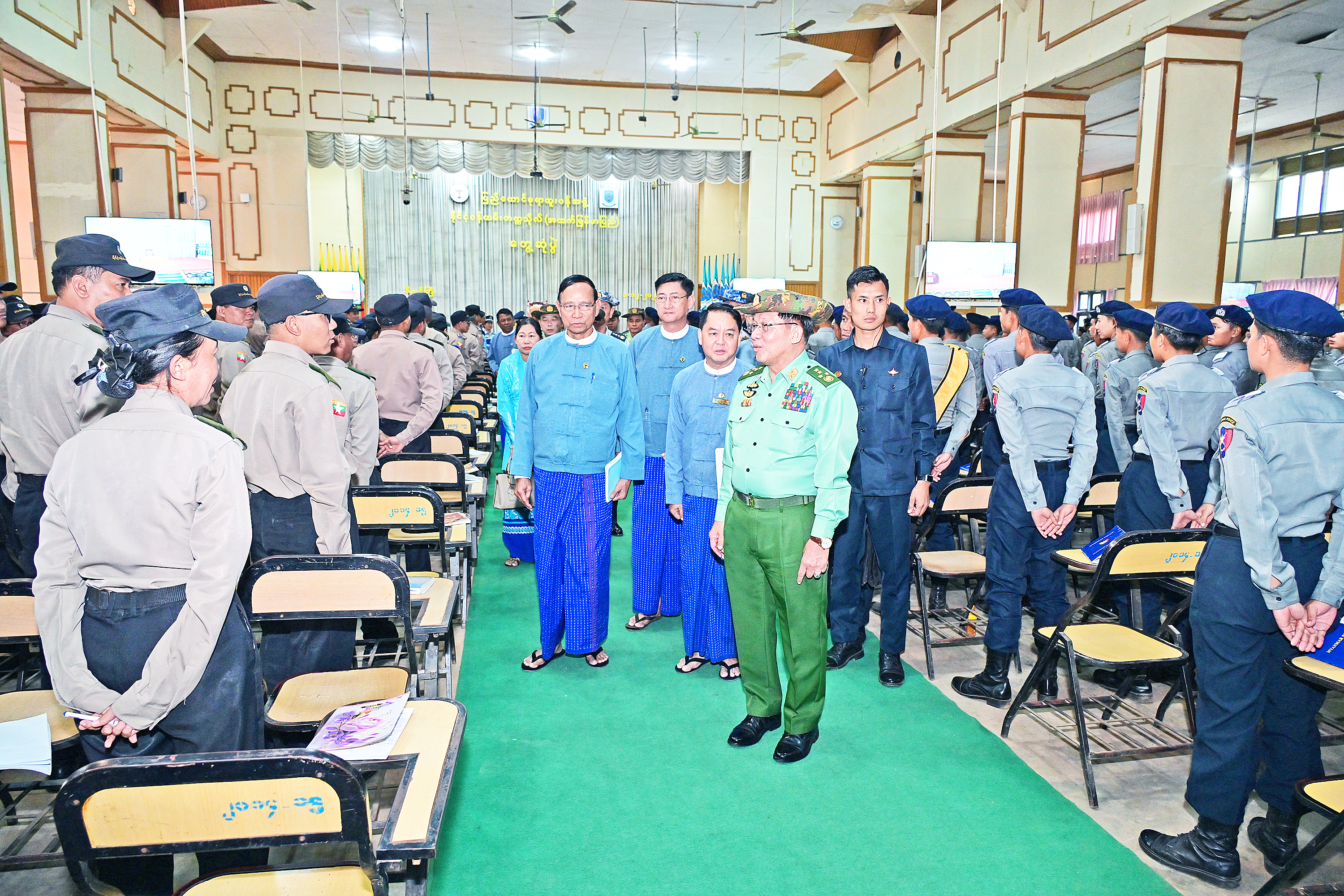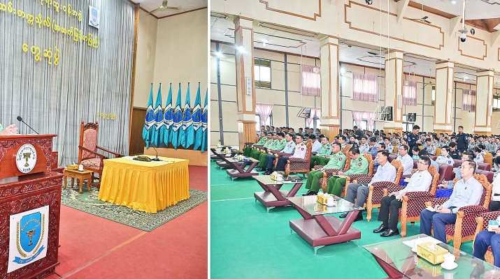ပြည်ထောင်စုသမ္မတမြန်မာနိုင်ငံတော် ယာယီသမ္မတ နိုင်ငံတော်လုံခြုံရေးနှင့်အေးချမ်းသာယာရေး ကော်မရှင်ဥက္ကဋ္ဌ ဗိုလ်ချုပ်မှူးကြီးမင်းအောင်လှိုင်သည် မန္တလေးတိုင်းဒေသကြီး၊ ပြင်ဦးလွင်မြို့နယ်၊ ဇီးပင်ကြီးရှိ နိုင်ငံ့ဝန်ထမ်းတက္ကသိုလ် (အထက် မြန်မာပြည်)၊ ရဲအရာရှိလေ့ကျင့်ရေးကျောင်း (ဇီးပင်ကြီး) နှင့် ဗဟိုမီးသတ်သင်တန်း ကျောင်း(ပြင်ဦးလွင်)တို့မှ နည်းပြအရာရှိများနှင့် သင်တန်းသား၊သင်တန်းသူများအား ယနေ့မွန်းလွဲပိုင်းတွင်နိုင်ငံ့ဝန်ထမ်းတက္ကသိုလ် (အထက်မြန်မာပြည်)ရှိ ရတနာခန်းမ၌ တွေ့ဆုံအမှာစကားပြောကြားသည်။