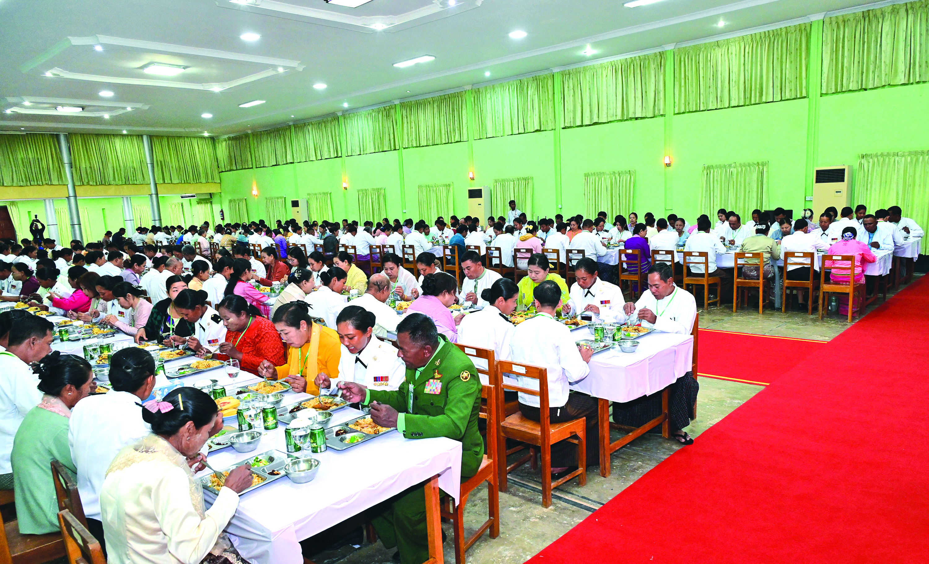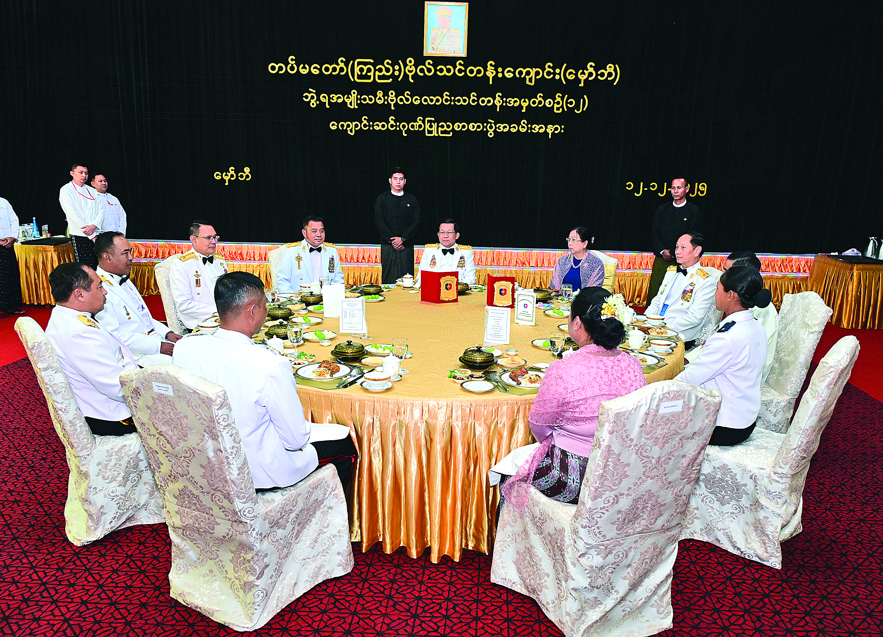 ထို့နောက် နိုင်ငံတော်လုံခြုံရေးနှင့် အေးချမ်း သာယာရေးကော်မရှင်ဥက္ကဋ္ဌ တပ်မတော် ကာကွယ်ရေးဦးစီးချုပ်နှင့်အဖွဲ့ဝင်များသည်သင်တန်းဆင်းအမျိုးသမီးအရာရှိများ၊ညစာစားပွဲ တက်ရောက်လာကြသူများနှင့်အတူ ဂုဏ်ပြုညစာကို အတူတကွသုံးဆောင် ကြသည်။