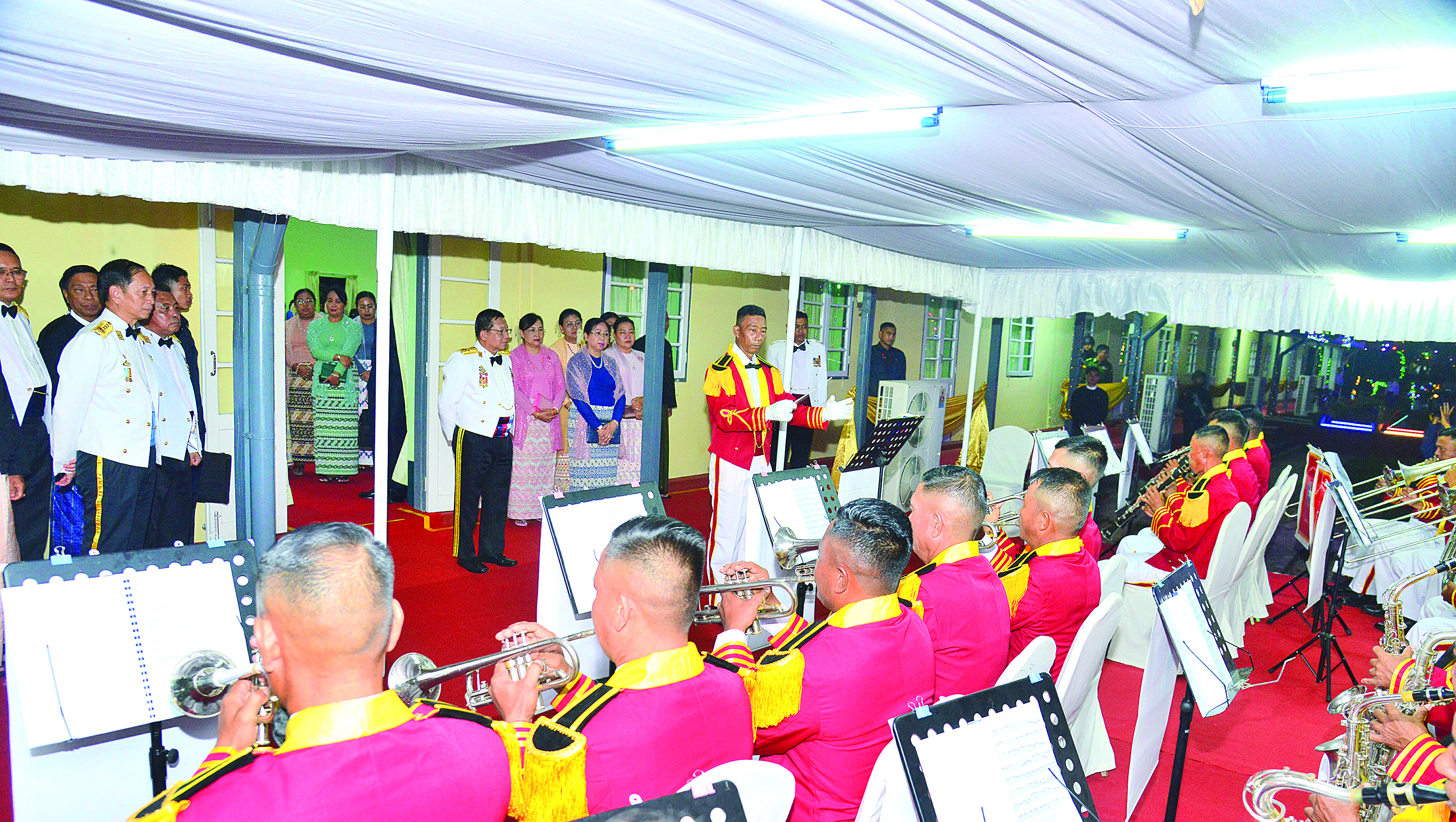ထို့နောက် နိုင်ငံတော်လုံခြုံရေးနှင့် အေးချမ်းသာယာရေးကော်မရှင်ဥက္ကဋ္ဌ တပ်မတော် ကာကွယ်ရေးဦးစီးချုပ်နှင့် အဖွဲ့ဝင်များသည် တပ်မတော်(ကြည်း) ဗိုလ်သင်တန်း ကျောင်း(မှော်ဘီ) ဂုဏ်ပြု စစ်တီးဝိုင်းတပ်ခွဲ၏ ဂုဏ်ပြုတီးမှုတ်မှုအား ကြည့်ရှုအားပေးပြီး ချီးမြှင့်ငွေများ ပေးအပ်သည်။
