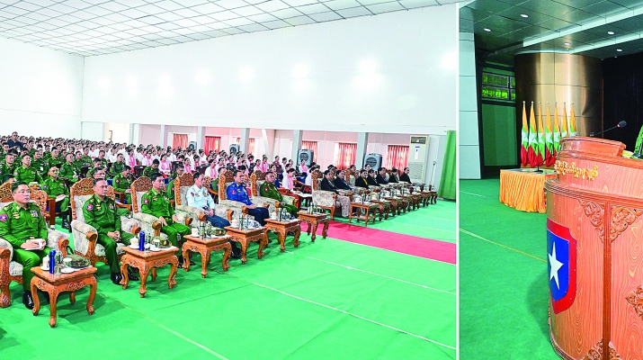 လက်ရှိအချိန်တွင် တပ်မတော်၌ အမျိုးသမီးစစ်မှုထမ်းများသည်လည်း အမျိုးသားများနှင့်ရင်ပေါင်တန်း၍ နိုင်ငံတော်ကာကွယ်ရေးနှင့် လုံခြုံရေးတာဝန်များကို ထမ်းဆောင်နေပြီဖြစ်ကြောင်း၊ ၂၀၂၄ခုနှစ်တွင် ကောက်ယူခဲ့သည့်လူဦးရေနှင့်အိမ်အကြောင်းအရာသန်းခေါင်စာရင်းအချက်အလက်များအရ မိမိတို့နိုင်ငံတွင် အမျိုးသမီးဦးရေမှာ ပိုမိုများပြားသည်ကို တွေ့ရှိရကြောင်း၊ သို့ဖြစ်၍နိုင်ငံတော်တွင် အမျိုးသမီးများ၏လုပ်အားမှာ မနည်းသည်ကို တွေ့မြင်နိုင်ကြောင်း၊ တပ်မတော်သားမိသားစုဝင် မှီခိုသူမိသားစုများ အချင်းချင်းအနေဖြင့် ညီရင်းအကို၊ မောင်ရင်းနှမ စိတ်ဓာတ်မွေး၍ စည်းလုံးညီညွတ်စွာဖြင့်နေထိုင်ဆောင်ရွက်ကြရန်လိုကြောင်း၊ စစ်သည်အင်အားနှင့် ရဲမေအင်အားများပူးပေါင်းဆောင်ရွက်မည်ဆိုပါက နိုင်ငံတော်၏ ကာကွယ်ရေးအင်အားစုမှာများစွာတောင့်တင်းခိုင်မာသည်ကိုတွေ့မြင်ရမည်ဖြစ်ပြီး စုစည်းညီညွတ်သည့်အားကို တန်ဖိုး ထား ဆောင်ရွက်ကြရန်လိုကြောင်း။
