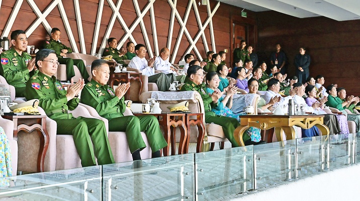 Also present together with the Senior General were wife, Daw Kyu Kyu Hla, SSPC Vice Chairman Deputy Commander-in-Chief of Defence Services Commander-in-Chief (Army) Vice-Senior General Soe Win, SSPC member Chief of General Staff (Army, Navy and Air) General Kyaw Swa Lin and wife, union level dignitaries, union ministers and wives, senior military officers from the Office of the Commander-in-Chief and wives, the Nay Pyi Taw Command commander, officers, other ranks and families of office/department of the Office of the Commander-in-Chief (Army, Navy and Air), officers, other ranks and families of battalions and units under the com-mand of Nay Pyi Taw Command, trainees of Tatmadaw Football Academy, invited guests and members of the competing teams.