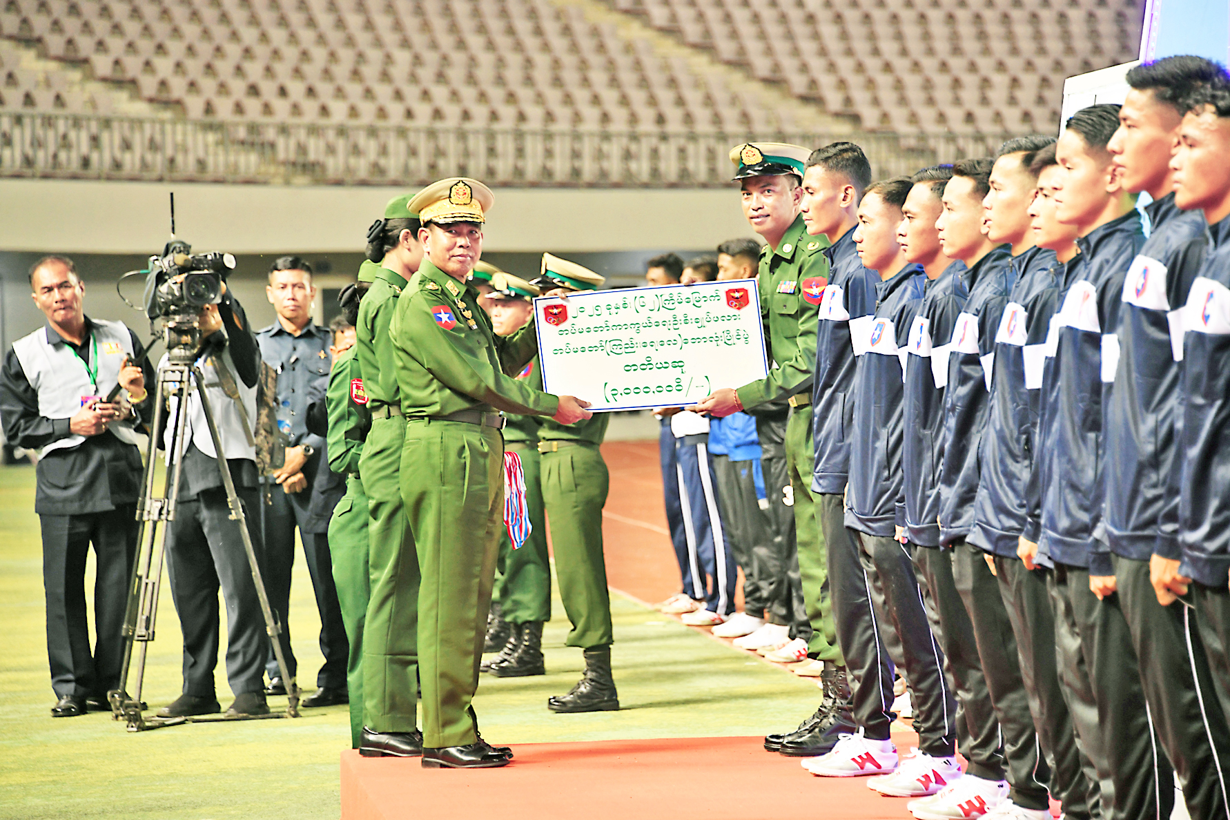 Chairman of State Security and Peace Commission of the Republic of the Un-ion of Myanmar, Commander-in-Chief of Defence Services, Senior General Min Aung Hlaing presented the championship trophy, additional trophy and cash awards to the Camp Commandant Office team through the team manager.