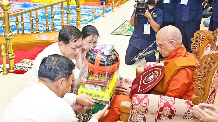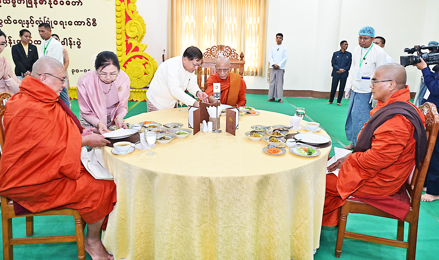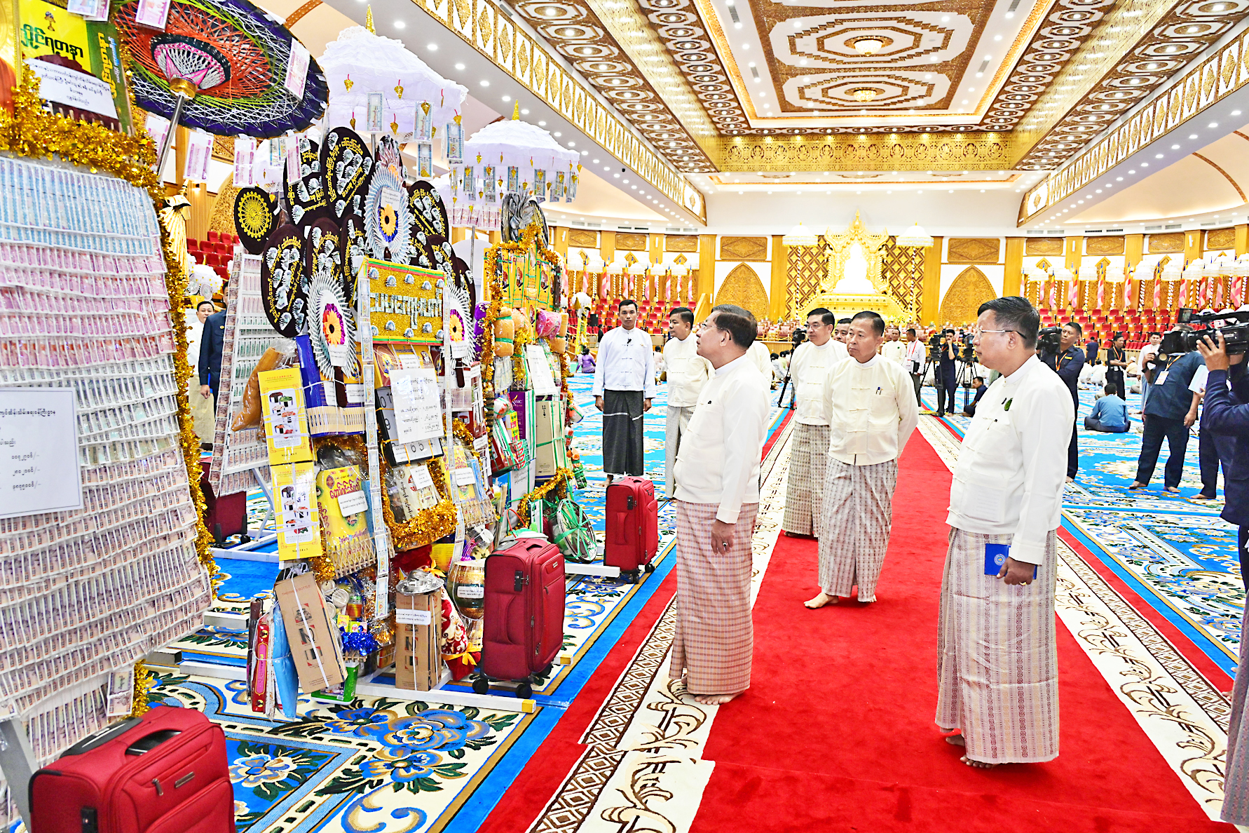 The Prime Minister and wife, the Executive Chief and wife, the Joint Executive Chief and wife, SSPC members and wives, union level dignitaries, union ministers, and senior military officers from the Office of the Commander-in-Chief presented kathina robes and offertories to Sayadaws re-spectively.