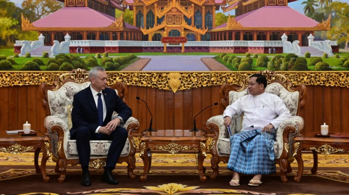 A delegation led by Governor of the Novosibirsk Region of the Russian Federation H.E. Mr. Andrey Aleksandrovich Travnikov paid a courtesy call on Acting President of the Republic of the Union of Myanmar, Chairman of the State Security and Peace Commission, Senior General Min Aung Hlaing this morning.