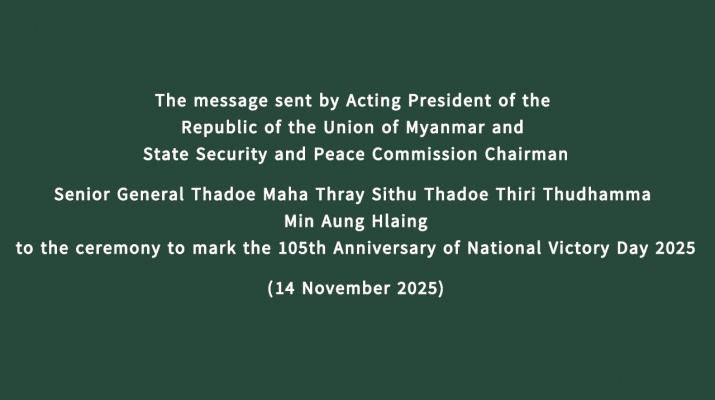 The National Victory Day is a historic day in Myanmar’s struggle for independence. It is a day that awakened and strengthened the national spirit, patriotism, and vitality of the Myanmar people. On this significant and noble occasion, under the motto of the 105th National Victory Day, “Let’s march towards a new golden nation in unity,” I deeply urge all citizens of Myanmar to uphold the spirit of the Union and, with unity and national strength, work together to build a peaceful, prosperous, and developed new Golden Land.