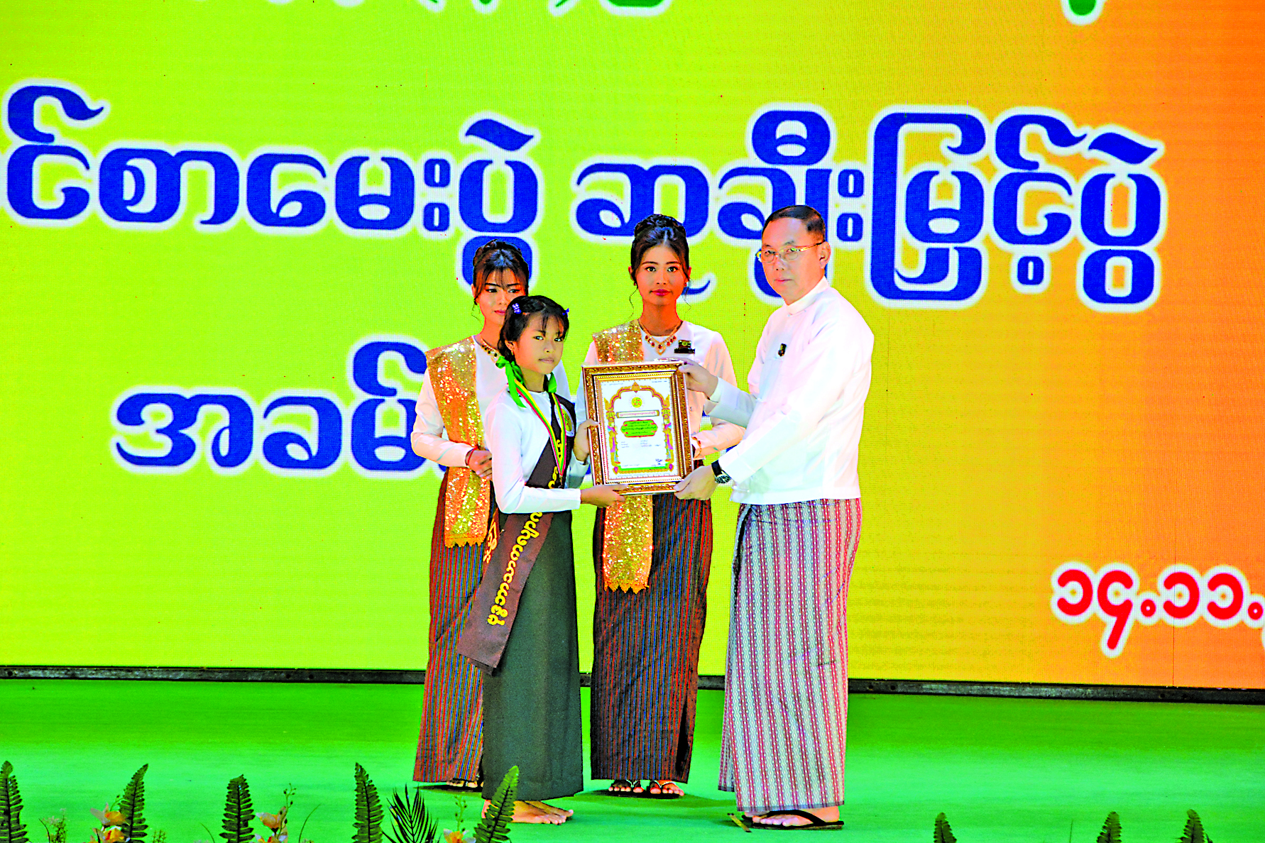 Ma Thu Thu Thantha Aung from Mawlamyine, Mon State, silver medalist of the old song contest of the 26th Myanmar Traditional Cultural Performing Arts Competitions, entertained the attendees with the song Thonyaungchel.