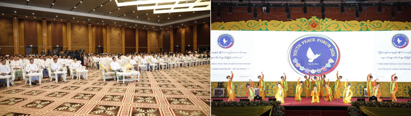 The opening ceremony of Youth Peace Forum 2026 took place at MICC-1 here this morning, with an opening address by Acting President of the Republic of the Union of Myanmar, Chairman of State Security and Peace Commission, Chairman of National Solidarity and Peacemaking Central Committee Senior General Min Aung Hlaing.