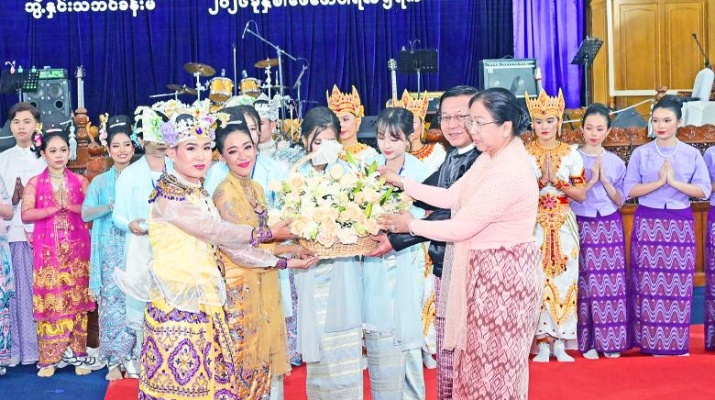 Present were Senior General Min Aung Hlaing and wife, Daw Kyu Kyu Hla, SSPC Secretary General Ye Win Oo and wife, SSPC members and wives, union ministers and wives, the Yangon Region Chief Minister, senior military officers from the Office of the Commander-in-Chief and wives, the Yangon Command commander, deputy ministers, the Yangon University rector, specially invited rectors of international universities, honorary professors, professors, honoured guests and officials.