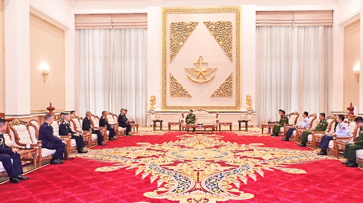 Chairman of State Security and Peace Commission Comman-der-in-Chief of Defence Services Senior General Min Aung Hlaing received a delegation led by Commander-in-Chief of the Royal Thai Air Force (RTAF)Air Chief Marshal Sakesan Kantha at the parlour of Zeyathiri Villa here this morning.
