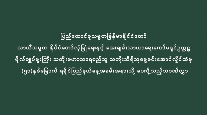 (၂၀၂၅ ခုနှစ်၊ ဒီဇင်ဘာလ ၁၅ ရက်) ပြည်နယ်အေးချမ်းသာယာရေးနှင့်ဖွံ့ဖြိုးတိုးတက်မှုတို့မှာမှီတင်းနေထိုင်ကြသောတိုင်းရင်းသားအားလုံး၏စည်းလုံးညီညွတ်မှုနှင့်ပြည်ထောင်စုစိတ်ဓာတ်ခိုင်မြဲမှုတို့အပေါ်တွင် မှီတည်လျက်ရှိ ချစ်ခင်လေးစားအပ်ပါသော ရခိုင်ပြည်နယ်အတွင်းရှိ မိဘပြည်သူ ညီအစ်ကိုမောင်နှမအပေါင်းတို့ခင်ဗျား ယနေ့ ၂၀၂၅ ခုနှစ်၊ ဒီဇင်ဘာလ(၁၅)ရက်နေ့တွင် ကျရောက်သည့် (၅၁)နှစ်မြောက် ရခိုင်ပြည်နယ်နေ့၏နေ့ထူးနေ့မြတ်အခါသမယ၌ ရခိုင်ပြည်နယ်နှင့် ဒေသအသီးသီးတွင်ရောက်ရှိနေကြသော ရခိုင်တိုင်းရင်းသားသွေးချင်းညီအစ်ကိုမောင်နှမများနှင့် နိုင်ငံတစ်ဝန်းရှိ ပြည်ထောင်စုဖွားတိုင်းရင်းသားပြည်သူများအားလုံး ကိုယ်စိတ်နှစ်ဖြာသုခချမ်းသာပြည့်စုံကြ၍ ကောင်းကျိုးလိုအင်ဆန္ဒများပြည့်ဝကြပါစေကြောင်း ဦးစွာဆုမွန်ကောင်းတောင်းလျက်နှုတ်ခွန်းဆက်သအပ်ပါသည်။ ရခိုင်ပြည်နယ်နေ့သည် ပြည်ထောင်စုဖွားရခိုင်တိုင်းရင်းသားတို့အတွက် ထူးခြားလေးနက်သောဝိသေသများနှင့်ပြည့်စုံပြီး ဂုဏ်ယူဖွယ်ရာမင်္ဂလာရှိသောနေ့ဖြစ်ပါသည်။ ၁၉၇၄