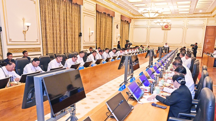 နိုင်ငံတော်လုံခြုံရေးနှင့်အေးချမ်းသာယာရေးကော်မရှင်ဥက္ကဋ္ဌ တပ်မတော်ကာကွယ်ရေးဦးစီးချုပ် ဗိုလ်ချုပ်မှူးကြီးမင်းအောင်လှိုင် နိုင်ငံတော်ကာကွယ်ရေးတက္ကသိုလ်မှ နည်းပြအရာရှိကြီးများနှင့် သင်တန်းသားအရာရှိကြီးများအား Video Conferencing ဖြင့် အမှာစကားပြောကြား