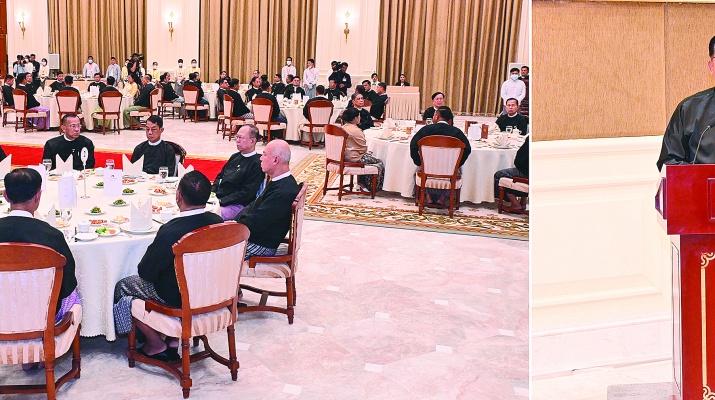 “(၅၄) ကြိမ်မြောက် မြန်မာနိုင်ငံ ကျန်းမာရေးဆိုင်ရာသုတေသနညီလာခံ”ဖွင့်ပွဲအခမ်းအနားတွင် ပြည်ထောင်စုသမ္မတမြန်မာနိုင်ငံတော် ယာယီသမ္မတ နိုင်ငံတော်လုံခြုံရေးနှင့်အေးချမ်းသာယာရေးကော်မရှင်ဥက္ကဋ္ဌ ဗိုလ်ချုပ်မှူးကြီးမင်းအောင်လှိုင် ပြောကြားသည့်ဂုဏ်ပြုမိန့်ခွန်း