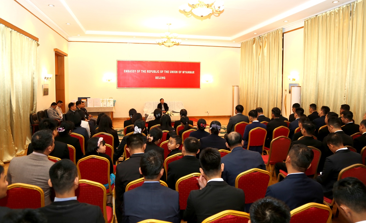 တပ်မတော်ကာကွယ်ရေးဦးစီးချုပ် ဗိုလ်ချုပ်မှူးကြီးမင်းအောင်လှိုင် ပေကျင်းမြို့ရှိ တရုတ်နိုင်ငံဆိုင်ရာ မြန်မာ နိုင်ငံသံရုံး၊ စစ်သံရုံးမိသားစုများအားတွေ့ဆုံ