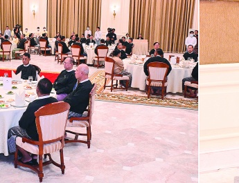 ၎င်းနောက် တပ်မတော်ကာကွယ်ရေးဦးစီးချုပ်နှင့်အဖွဲ့ဝင်များသည် နေ့လယ်ပိုင်း တွင် ကွင်းကောက်တပ်နယ်ရှိ တပ်မတော်တန်းမြင့်လေ့ကျင့်ရေးကျောင်း သင်တန်းသား စားရိပ်သာတွင် သင်တန်းသားများနှင့် နေ့လယ်စာ အားအတူတကွသုံးဆောင်ကြသည်။ ထို့နောက် တပ်မတော်ကာကွယ်ရေးဦးစီးချုပ်သည် သင်တန်းကျောင်း များတွင် ဥစားကြက်များ မွေးမြူထားရှိမှု၊ DYL ဝက်များမွေးမြူထားရှိမှုနှင့် နို့စားနွားများမွေးမြူ ထားရှိမှုတို့အား လိုက်လံကြည့်ရှုစစ်ဆေးပြီး တာဝန်ရှိသူများ၏ တင်ပြချက်များအပေါ် လိုအပ်သည်များ မှာကြားဖြည့်ဆည်းဆောင်ရွက်ပေးခဲ့သည်။