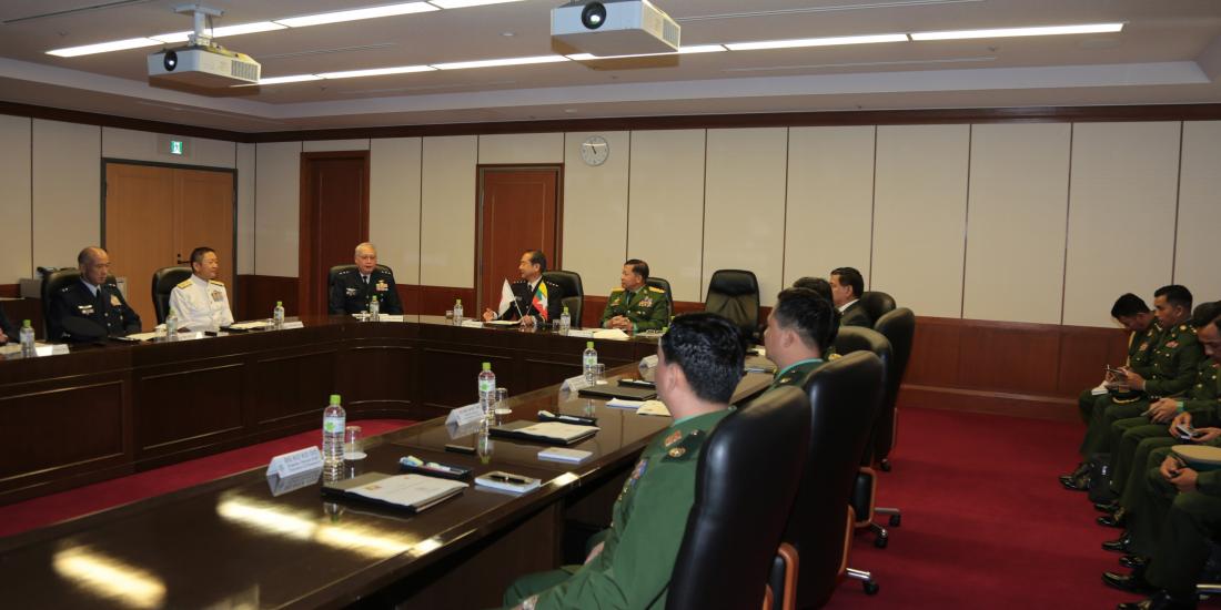 ယင္းေနာက္ ဂ်ပန္တပ္မေတာ္မွတာဝန္ရွိသူတစ္ဦးက ဂ်ပန္ကာကြယ္ေရးဝန္ႀကီးဌာန၏ ကာကြယ္ေရး ဆိုင္ရာေဆာင္႐ြက္မႈမ်ား၊ ေဒသတြင္းလုံၿခဳံေရးဆိုင္ရာမ်ားတြင္ ေဆာင္႐ြက္လ်က္ရွိသည့္ အေျခ အေနမ်ား၊ ကာကြယ္ေရးဆိုင္ရာမ်ားတြင္ ျမႇင့္တင္လ်က္ရွိသည့္ အေျခအေနမ်ားႏွင့္ ျမန္မာ-ဂ်ပန္ ႏွစ္ႏိုင္ငံေကာင္းမြန္သည့္ ဆက္ဆံေရးႏွင့္ ပူးေပါင္းေဆာင္႐ြက္လ်က္ရွိသည့္ အေျခအေနမ်ားအား ရွင္းလင္းတင္ျပရာ တပ္မေတာ္ကာကြယ္ေရးဦးစီးခ်ဳပ္က သိရွိလိုသည္မ်ားအား ျပန္လည္ေမးျမန္း ေဆြးေႏြးခဲ့သည္။