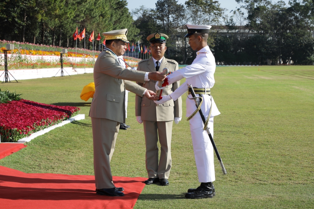ယင်းနောက် တပ်မတော်ကာကွယ်ရေးဦးစီးချုပ်က စစ်တက္ကသိုလ်ဗိုလ်လောင်း သင်တန်း အမှတ်စဉ်(၆၁)မှ အောင်စစ်သည်ဆုရရှိသူ ဗိုလ်လောင်းအမှတ် ၃၂၉၂၃၊ ဗိုလ်လောင်း ပြည့်ဖြိုးလှိုင်၊ လေ့ကျင့်ရေးထူးချွန်ဆုရရှိသူ ဗိုလ်လောင်းအမှတ် ၃၂၆၇၇၊ ဗိုလ်လောင်း စိုးထက်မြတ်ကျော်၊ စာပေထူးချွန်ဆု(ဝိဇ္ဇာ)ရရှိသူ ဗိုလ်လောင်းအမှတ် ၃၂၈၇၈၊ ဗိုလ်လောင်း ဖြိုးမင်းကျော်၊ စာပေထူးချွန်ဆု(သိပ္ပံ)ရရှိသူ ဗိုလ်လောင်းအမှတ် ၃၃၃၉၁၊ ဗိုလ်လောင်း အောင်ဖြိုးကျော်၊ စာပေထူးချွန်ဆု(ကွန်ပျူတာ) ရရှိသူ ဗိုလ်လောင်း အမှတ် ၃၂၉၂၉၊ ဗိုလ်လောင်း ပြည့်မိုးလျှံတို့အား ဆုများအသီးသီး ပေးအပ်ချီးမြှင့်သည်။