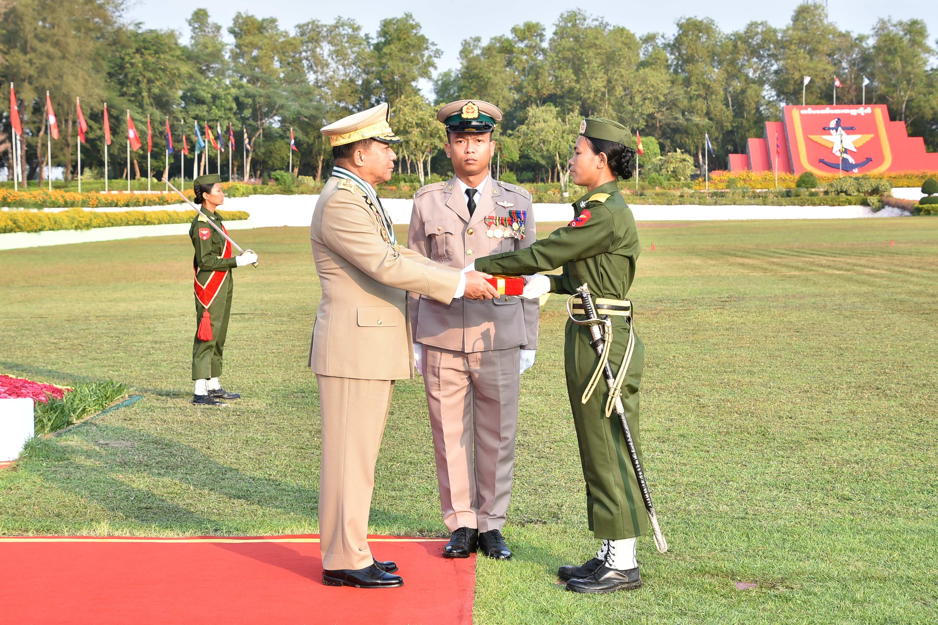 ဆက္လက္ၿပီး တပ္မေတာ္ကာကြယ္ေရးဦးစီးခ်ဳပ္က တပ္မေတာ္သူနာျပဳႏွင့္ ေဆးဘက္ပညာတကၠသိုလ္ တပ္မေတာ္အမ်ိဳးသမီးသူနာျပဳႏွင့္ေဆးဘက္ပညာသိပၸံဘြဲ႕ သင္တန္းအမွတ္စဥ္(၄)မွ အေကာင္းဆုံးသင္တန္းသူဆုရရွိသူ သင္ တန္းသူအမွတ္ ၂၅၇၊ သင္တန္းသူ ၾကည္ၾကည္ၿငိမ္း၊ ေလ့က်င့္ေရးထူးခြၽန္ဆုရရွိသူ သင္တန္းသူအမွတ္ ၂၂၆၊ သင္တန္းသူ ခင္ျဖဴႏွင္း၊ စာေပထူးခြၽန္ဆုရရွိသူ သင္တန္းသူအမွတ္ ၂၃၇၊ သင္တန္းသူ သႏၲာေအာင္ တို႔အား ဆုမ်ားေပးအပ္ခ်ီးျမႇင့္သည္။