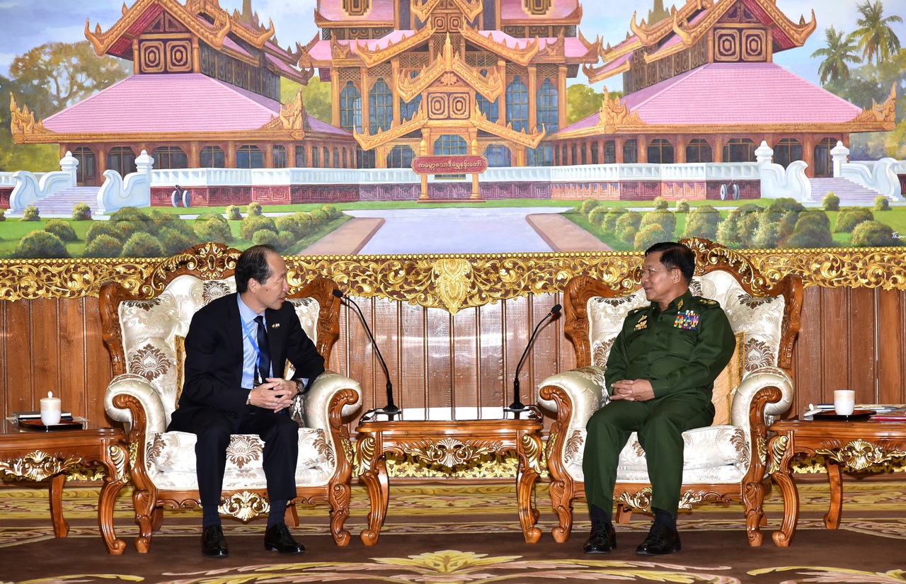 တပ်မတော်ကာကွယ်ရေးဦးစီးချုပ် ဗိုလ်ချုပ်မှူးကြီး မင်းအောင်လှိုင် မြန်မာနိုင်ငံဆိုင်ရာ မလေးရှားနိုင်ငံ သံအမတ်ကြီး H.E. Mr. Zahairi Baharim ၊ မြန်မာနိုင်ငံဆိုင်ရာ ဂျပန်နိုင်ငံ သံအမတ်ကြီး H.E. Mr. Ichiro MARUYAMA တို့အားလက်ခံတွေ့ဆုံ