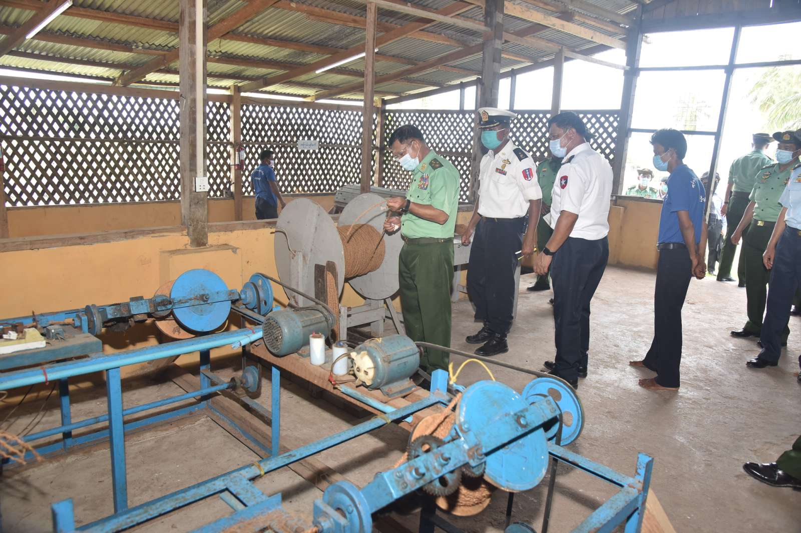 ထို႔ေနာက္ တပ္မေတာ္ကာကြယ္ေရးဦးစီးခ်ဳပ္ႏွင့္ အဖြဲ႕ဝင္မ်ားသည္ နယ္ေျမခံ ေရတပ္စခန္း အုန္းႏွင့္ အုန္းထြက္ပစၥည္းလုပ္ငန္းမွ အုန္းဆီ၊ အုန္းဆံႀကိဳး၊ အုန္း အလွဆင္ ပစၥည္းႏွင့္ အိမ္သုံးပစၥည္းမ်ား ထုတ္လုပ္ေနမႈမ်ားကို သြားေရာက္ၾကည့္ရႈၾကရာ တာဝန္ ခံ မ်ားက လိုက္လံရွင္းလင္းျပသၾကသည္။ ရွင္းလင္းတင္ျပမႈမ်ားအေပၚ တပ္မေတာ္ ကာကြယ္ေရးဦးစီးခ်ဳပ္က ဆက္လက္၍ အုန္းဆီ၊ အုန္းမီးေသြး၊ အုန္းခြံဓာတ္ေျမၾသဇာ မ်ားအျပင္ အုန္းႏွင့္ ပတ္သက္သည့္ အရည္အေသြးျမင့္ထုတ္ကုန္မ်ား ဆက္လက္ ထုတ္လုပ္ႏိုင္မည့္ အေျခအေနမ်ားကို ျပန္လည္ေဆြးေႏြးေျပာၾကားခဲ့သည္။