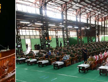 ၎င်းနောက် တပ်မတော်ကာကွယ်ရေးဦးစီးချုပ်က လေ့ကျင့်ခန်းတွင်ပါဝင်သည့် တာဝန် ရေတပ်မမှူးနှင့် အရာရှိ၊ စစ်သည်များကို စစ်ရေယာဉ်(မုတ္တမ)ပေါ်၌ အမှာ စကားပြောကြားရာတွင် Sea Shield လေ့ကျင့်ခန်းကို ၂၀၁၄ ခုနှစ်တွင် စတင် လုပ်ဆောင်ခဲ့ခြင်းဖြစ်ပြီး ၇ ကြိမ်ရှိပြီဖြစ်ကြောင်း၊ ယခင်လုပ်ဆောင်ခဲ့သည့် အတွေ့ အကြုံများကိုယူ၍ ယခုလေ့ကျင့်ခန်းကို ဆောင်ရွက်ခဲ့ခြင်းဖြစ်ကြောင်း၊ သာမာန်အား ဖြင့်ကြည့်မည်ဆိုပါက ပုံမှန်လေ့ကျင့်ခန်းတစ်ခုဖြစ်သော်လည်း နိုင်ငံတော်ကာကွယ် ရေးအတွက် အလွန်အရေးပါသည့် လေ့ကျင့်မှုတစ်ခုပင်ဖြစ်ကြောင်း၊ မိမိတို့နိုင်ငံ၏ ရေပိုင်နက်သည် အလွန်ကျယ်ပြန့်ပြီး ကမ်းရိုးတန်းအရှည် ရေမိုင် ၁၃၀၀ ခန့် ရှည်လျားကာ ရေပြင်ဧရိယာစတုရန်းရေမိုင် ၁၄၄၀၀၀ ကျော်ကျယ်ဝန်းသဖြင့် ရေပိုင် နက် ဧရိယာကို လုံခြုံအောင် ကာကွယ်နိုင်ရေးတွင် တပ်မတော်(ရေ)၏ အခန်းကဏ္ဍ သည် အလွန်အရေးကြီးကြောင်း၊ ရေတပ်တွင် လေ့ကျင့်ရေးနှင့် ပတ်သက်ပါက ပစ်မှတ်ထိမှန်ရန် အဓိကအရေးကြီးပြီး ရေကြောင်းစစ်ဆင်ရေးတိုက်ပွဲများတွင် စစ်ရေယာဉ် တစ်စီး ထိမှန် ပျက်စီးပါက ဆုံးရှုံးမှုအလွန်ကြီးမားပြီး တိုက်စွမ်းရည်ကို များစွာထိခိုက် စေနိုင်သည်ကို သတိပြုရမည်ဖြစ်ကြောင်း၊ “ပစ်လျှင်ထိရမည်၊ ထိအောင်လည်း လေ့ကျင့်ရမည်” ဆိုသည့် လေ့ကျင့်ရေးမူဝါဒအတိုင်း ပစ်မှတ် ထိမှန်အောင် စနစ်တကျလေ့ကျင့် ဆောင်ရွက်ကြရန်လိုကြောင်း၊ ယခုလေ့ကျင့်ခန်း တွင် Area Target ကို ပစ်ခတ်ခြင်းဖြစ်သဖြင့် သတ်မှတ်ထားသည့် ဧရိယာအတွင်း၊ ဘောင် အတွင်းသို့ ကျရောက်အောင် လေ့ကျင့်ဆောင်ရွက်ကြရန် လိုအပ်မည်ဖြစ် ကြောင်း။