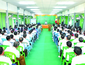 ဦးစြာ ႏိုင္ငံေတာ္စီမံအုပ္ခ်ဳပ္ေရးေကာင္စီ ဥကၠ႒၊ တပ္မေတာ္ကာကြယ္ေရး ဦးစီးခ်ဳပ္ႏွင့္ အဖြဲ႕ဝင္မ်ားအား ျမန္မာ့စီးပြားေရးဦးပိုင္အမ်ားႏွင့္သက္ဆိုင္ေသာ ကုမၸဏီ လီမိတက္ဥကၠ႒ ဒုတိယဗိုလ္ခ်ဳပ္ႀကီး ဆန္းဦး ႏွင့္ စက္႐ုံမွ တာဝန္ရွိသူမ်ားက ႀကိဳဆို ႏႈတ္ဆက္ၾကၿပီး စက္႐ုံအစည္းအေဝးခန္းမတြင္ ဒုတိယဗိုလ္ခ်ဳပ္ႀကီး ဆန္းဦး က စက္႐ုံမွ ကိုယ္တိုက္ဆပ္ျပာႏွင့္ အဝတ္ေလွ်ာ္ဆပ္ျပာခဲမ်ား ထုတ္လုပ္ေနမႈအေျခ အေနမ်ားႏွင့္ လုပ္ငန္းလည္ပတ္ေနမႈအေျခအေနမ်ားႏွင့္ အင္းတေကာ္ ေမာ္ေတာ္ယဥ္ တပ္ဆင္ထုတ္လုပ္ေရးစက္႐ုံမွ SKD စနစ္ႏွင့္ CKD စနစ္မ်ားျဖင့္ ေမာ္ေတာ္ယာဥ္မ်ား တပ္ဆင္ထုတ္လုပ္ ေဆာင္႐ြက္ေနမႈအေျခအေနမ်ားအားရွင္းလင္းတင္ျပသည္။