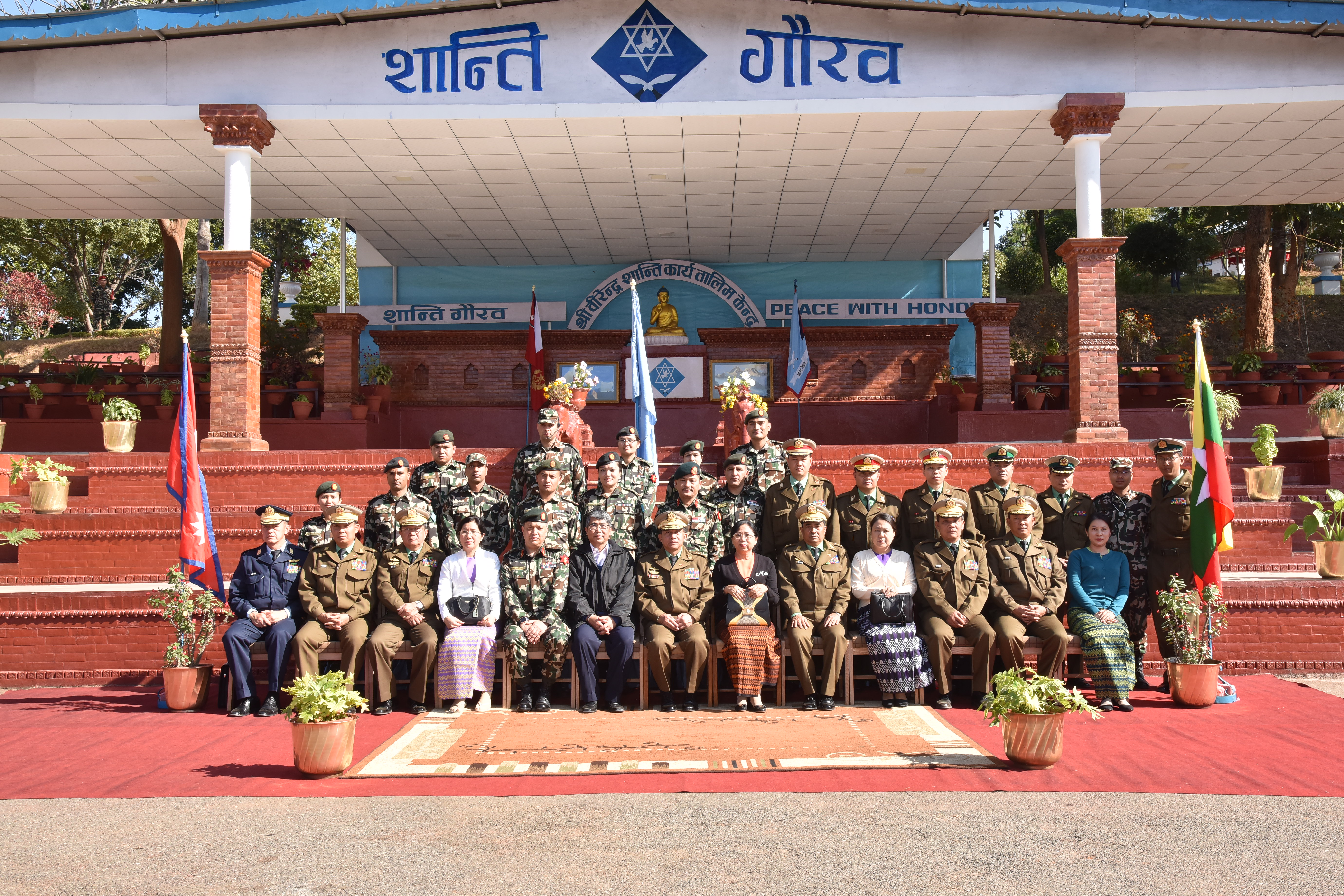 ဆက်လက်ပြီးတပ်မတော်ကာကွယ်ရေးဦးစီးချုပ်နှင့်အဖွဲ့ဝင်များသည် Birendra Peace Operation Training Center သို့ရောက်ရှိကြရာ နီပေါကြည်းတပ်မတော်၊ ကုလသမဂ္ဂငြိမ်းချမ်းရေးထိန်းသိမ်းရေးဌာန ဒုတိယညွှန်ကြားရေးမှူး Col. Yog Raj Sharma နှင့်တာဝန်ရှိသူများကကြိုဆိုနှုတ်ဆက်ကြသည်။ ယင်းနောက်အစည်းအဝေးခန်းမတွင် Col. Yog Raj က သင်တန်းကျောင်းဖွင့်လှစ်သင်ကြားနေမှုအခြေအနေများ၊ ကုလသမဂ္ဂငြိမ်းချမ်းမှုထိန်းသိမ်းရေးတပ်ဖွဲ့များတွင် နီပေါတပ်ဖွဲ့ဝင်များတာဝန်ထမ်းဆောင်နေမှုအခြေအနေများအား Powerpoint ဖြင့်ရှင်းလင်းတင်ပြရာ တပ်မတော်ကာကွယ်ရေးဦးစီးချုပ်က သိရှိလိုသည်များအားမေးမြန်းဆွေးနွေးသည်။