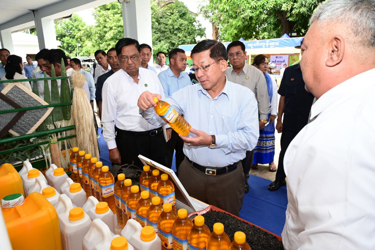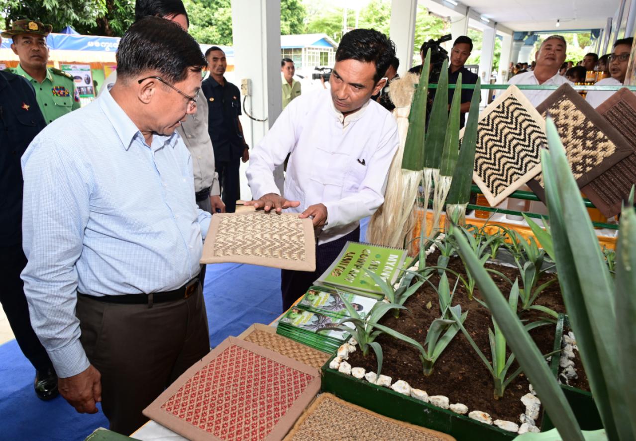 ထို့နောက်နိုင်ငံတော်လုံခြုံရေးနှင့် အေးချမ်းသာယာရေးကော်မရှင်ဥက္ကဋ္ဌသည် ခင်းကျင်းပြသထားသည့် အသေးစား၊ အငယ်စားနှင့် အလတ်စား စီးပွားရေး (MSME)လုပ်ငန်းများမှထွက်ရှိသည့် စိုက်ပျိုးမွေးမြူရေးထုတ်ကုန်များ ပြခန်းများ၌ ဒေသထွက်တိုင်းရင်းဆေးများ၊ အသုံးအဆောင်ပစ္စည်းများ၊ ချည်ထည်များနှင့် စားသောက်ကုန်ပစ္စည်းများ ပြသထားရှိမှုအား စိတ်ပါဝင်စားစွာဖြင့် လှည့်လည်ကြည့်ရှုပြီး တာဝန်ရှိသူများ၏ တင်ပြချက်များအပေါ် လိုအပ်သည်များလမ်းညွှန်မှာကြားခဲ့သည်။