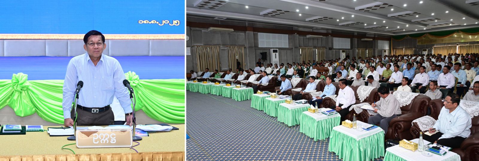 နိုင်ငံတော်လုံခြုံရေးနှင့်အေးချမ်းသာယာရေးကော်မရှင်ဥက္ကဋ္ဌ ဗိုလ်ချုပ်မှူးကြီးမင်းအောင်လှိုင်သည်မကွေးတိုင်းဒေသကြီးအတွင်းရှိ အသေးစား၊ အငယ်စားနှင့် အလတ်စားစီးပွားရေး(MSME)လုပ်ငန်းရှင်များအား ယနေ့ နံနက်ပိုင်းတွင် မကွေးမြို့၊ မြို့တော်ခန်းမ၌တွေ့ဆုံ၍ ကုန်ထုတ်လုပ်မှုလုပ်ငန်းများ ဖွံ့ဖြိုးတိုးတက်ရေးအတွက် ဆွေးနွေးပြောကြားသည်။