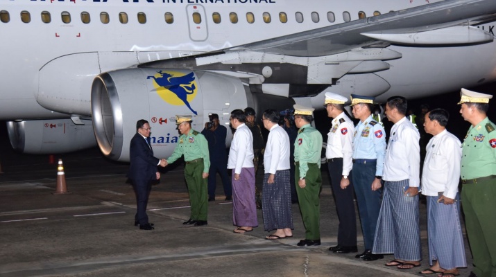 ပြည်ထောင်စုသမ္မတမြန်မာနိုင်ငံတော် ယာယီသမ္မတ နိုင်ငံတော်လုံခြုံရေးနှင့်အေးချမ်းသာယာရေး ကော်မရှင်ဥက္ကဋ္ဌ ဗိုလ်ချုပ်မှူးကြီးမင်းအောင်လှိုင် သည် ရုရှားဖက်ဒရေးရှင်းနိုင်ငံသမ္မတ H.E. Vladimir Vladimirovich Putin ၏ ဖိတ်ကြားချက်အရ ရုရှားဖက်ဒရေးရှင်းနိုင်ငံသို့ အလုပ်သဘောခရီးစဉ် အဖြစ်လည်းကောင်း၊ ကာဇက်စတန်နိုင်ငံသမ္မတ H.E.Mr. Kassym-Jomart Tokayev ၏ ဖိတ်ကြား ချက်အရ ကာဇက်စတန်နိုင်ငံသို့ အလုပ်သဘောခရီးစဉ်အဖြစ်လည်းကောင်း အသီးသီးသွားရောက်ခဲ့ပြီး ယနေ့နံနက်ပိုင်းတွင် ကာဇက်စတန်နိုင်ငံ၊ အက်စတာနာလေဆိပ်မှ ပြည်ထောင်စုသမ္မတမြန်မာနိုင်ငံ သို့ပြန်လည်ထွက်ခွာရာ ကာဇက်စတန်သမ္မတနိုင်ငံ၊ ဒုတိယဝန်ကြီးချုပ်(၁) Mr. Roman Sklyar ၊ ရုရှားဖက်ဒရေးရှင်းနိုင်ငံဆိုင်ရာ မြန်မာနိုင်ငံ သံအမတ်ကြီး ဦးသစ်လင်းအုန်းနှင့် တာဝန်ရှိသူများက လေဆိပ်၌ ပို့ဆောင်နှုတ်ဆက်ကြသည်။