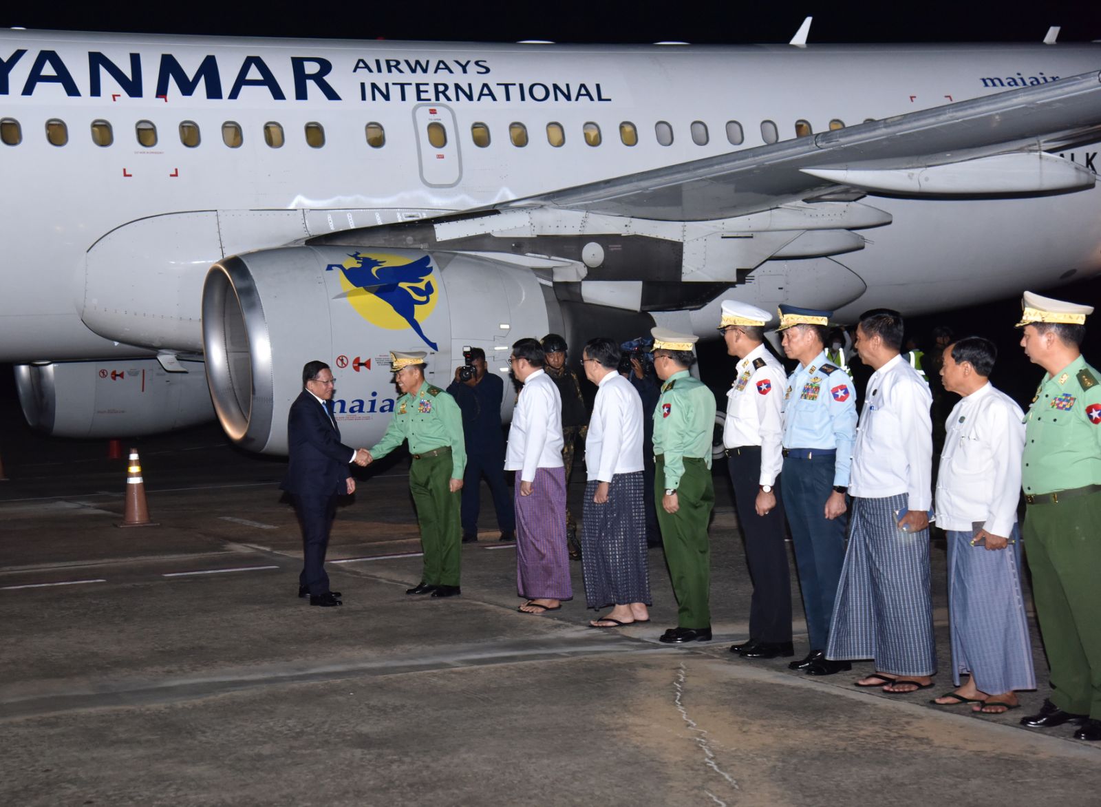 ထို့နောက် နိုင်ငံတော်ယာယီသမ္မတ နိုင်ငံတော်လုံခြုံရေးနှင့်အေးချမ်းသာယာ ရေးကော်မရှင်ဥက္ကဋ္ဌ ဦးဆောင်သည့် မြန်မာအဆင့်မြင့်ကိုယ်စားလှယ်အဖွဲ့သည် ညနေ ပိုင်းတွင် နေပြည်တော် တပ်မတော် လေဆိပ်သို့ ပြန်လည်ရောက်ရှိကြရာ ကော်မရှင် ဒုတိယဥက္ကဋ္ဌ ဒုတိယဗိုလ်ချုပ်မှူးကြီးစိုးဝင်း၊ ကော်မရှင် အဖွဲ့ဝင် နိုင်ငံတော်ဝန်ကြီးချုပ် ဦးညိုစော၊ ကော်မရှင်အဖွဲ့ဝင် အမှုဆောင်ချုပ် ဦးအောင်လင်းဒွေး၊ ကော်မရှင်အဖွဲ့ဝင်များ၊ ပြည်ထောင်စုဝန်ကြီးများ၊ မြန်မာနိုင်ငံဆိုင်ရာ ရုရှားဖက်ဒရေးရှင်းနိုင်ငံ သံအမတ်ကြီး H.E. Mr . Iskander Azizov ၊ ကာကွယ်ရေးဦးစီးချုပ်ရုံးမှ အဆင့်မြင့်တပ်မတော် အရာရှိကြီးများ၊ နေပြည်တော်တိုင်းစစ်ဌာနချုပ် တိုင်းမှူး၊ မြန်မာနိုင်ငံဆိုင်ရာ ရုရှားဖက်ဒရေးရှင်း နိုင်ငံသံရုံး၊ စစ်သံရုံးတို့မှ တာဝန်ရှိသူများ က ကြိုဆိုနှုတ်ဆက်ခဲ့ကြသည်။