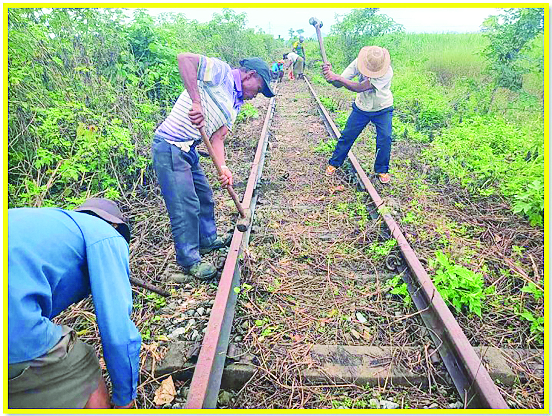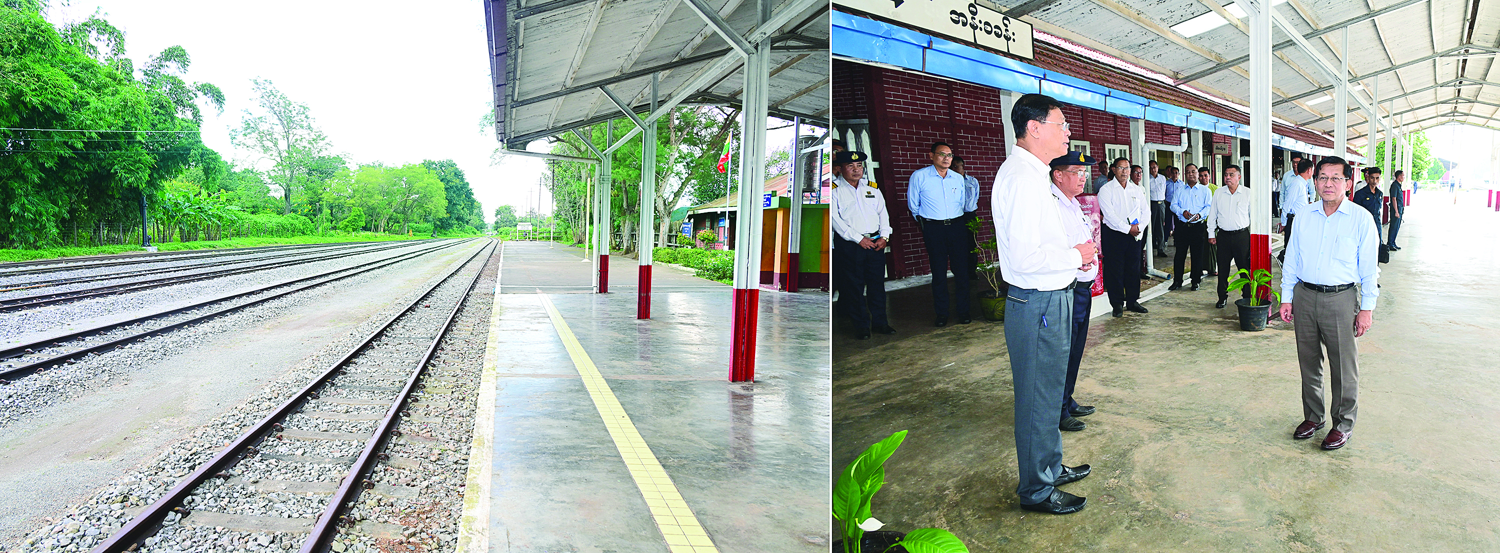 ထို့နောက် ပို့ဆောင်ရေးနှင့်ဆက်သွယ်ရေးဝန်ကြီးဌာန ပြည်ထောင်စုဝန်ကြီးနှင့် တာဝန်ရှိသူများက မန္တလေး-လားရှိုး ရထားလမ်းပိုင်းရှိ ပြင်ဦးလွင်- နောင်ချို-ဂုတ်ထိပ်-ကျောက်မဲရထားလမ်းပိုင်းအား ပြန်လည်ပြေးဆွဲနိုင်ရေးအတွက် အကြမ်းဖက်သောင်းကျန်းသူများ၏ မိုင်းထောင်ဖောက်ခွဲခဲ့မှုကြောင့်ပျက်စီးခဲ့သည့် ဂုတ်ထိပ်-နောင်ပိန်ကြား ဂုတ်ထိပ်တံတားတိုင်အမှတ် (၁၆)နှင့် ကမ်းကပ်ခုံအမှတ်(၂) အကြား ထိခိုက်ပျက်စီးမှုအား ရှေးမူလပုံစံပါအတိုင်း သံပေါင်အသစ် အစားထိုးပြင်ဆင်ဆောင်ရွက်လျက်ရှိမှု၊ ပျက်စီးခဲ့သည့် သံဘောင်အဟောင်းအား ဖယ်ရှားရှင်းလင်း၍ ယာယီအဖြစ် Way Beam သံဘောင်များထည့်သွင်းပြီး သံလမ်းခင်းခြင်းလုပ်ငန်းများ ဆောင်ရွက်လျက်ရှိမှုနှင့် ပျက်စီးခဲ့သည့်သံဘောင်နှင့် ပုံစံတူသံဘောင်သစ်အား ပြန်လည် ထုတ်လုပ်လျက်ရှိမှု၊ လမ်းပိုင်းတစ်လျှောက် တောချုံခုတ်ခြင်းနှင့်လမ်းပိုင်းများ ပြုပြင်ခြင်း၊ ထုံးဖို-ပြင်ဦးလွင်-နောင်ချို-ဂုတ်ထိပ်-ကျောက်မဲရထားလမ်းပိုင်း ပြုပြင်ထိန်းသိမ်းဆောင်ရွက်ခြင်းနှင့် ရထားလမ်းတစ်လျှောက် အကြမ်းဖက်သောင်းကျန်းသူများ ထောင်ထားသည့် မိုင်းများရှင်းလင်းခဲ့မှု အခြေအနေများ၊ ရထားသံလမ်းအစိတ်အပိုင်း များနှင့် ဆက်စပ်ပစ္စည်းများအား သောင်းကျန်းသူများက ဖျက်ဆီးခဲ့မှုများ၊ သံလမ်းဆက်ပြား ၃၈၃၂ ပြား၊ မူလီ ၁၇၁၈၈ လုံး၊ သံလမ်းထိန်းကလစ် ၁၆၃၁၁၅ ချောင်းတို့အား အကြမ်းဖက်သောင်းကျန်းသူများက ခိုးယူသွားမှုနှင့် အချိန်မီအစားထိုးတပ်ဆင်နိုင်ရေးဆောင် ရွက်လျက်ရှိမှုအခြေအနေများနှင့် ရထားလမ်းပြန်လည်ဖွင့်လှစ်နိုင်ရေး ဆောင်ရွက်လျက်ရှိမှုအခြေအနေများနှင့်ပတ်သက်၍ ရှင်းလင်းတင်ပြသည်။