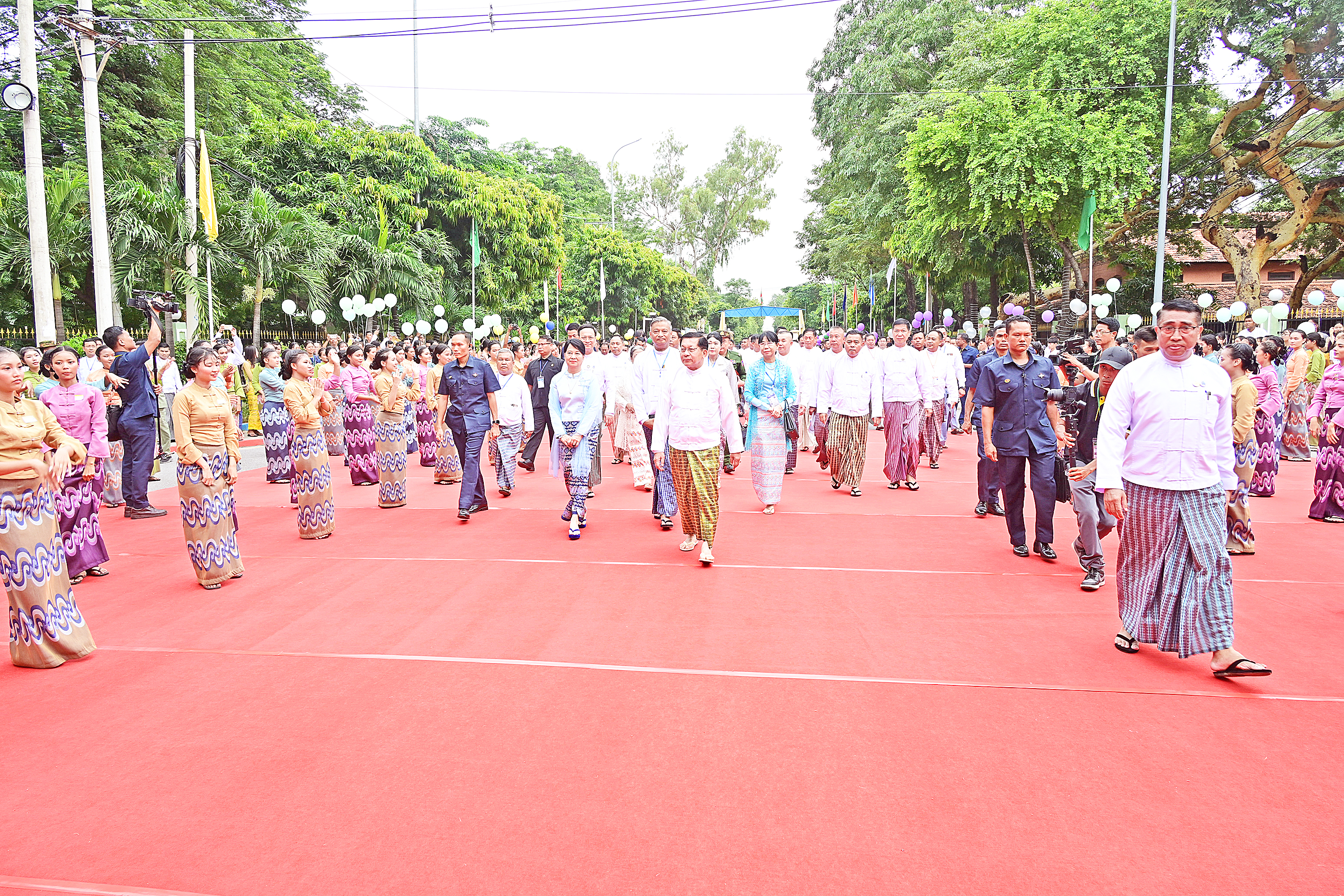 ထို့နောက် အခမ်းအနားအစီအစဉ်ပထမပိုင်းကိုစတင်ကျင်းပပြုလုပ်ရာ ကော်မရှင် အတွင်းရေးမှူး တွဲဖက်အမှုဆောင်ချုပ် ဗိုလ်ချုပ်ကြီးရဲဝင်းဦး၊ ကော်မရှင်အဖွဲ့ဝင် ဒုတိယဗိုလ်ချုပ်ကြီးရာပြည့်၊ သမ္မတရုံးဝန်ကြီးဌာန(၁) ပြည်ထောင်စုဝန်ကြီး ဦးတင်အောင်စန်း၊ ပညာရေးဝန်ကြီးဌာန ပြည်ထောင်စုဝန်ကြီး ဒေါက်တာချောချောစိန်၊ မန္တလေးတိုင်းဒေသကြီး ဝန်ကြီးချုပ် ဦးမျိုးအောင်တို့က အခမ်းအနားကိုဖဲကြိုးဖြတ် ဖွင့်လှစ်ပေးကြသည်။