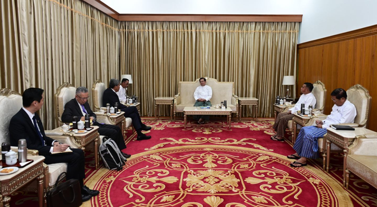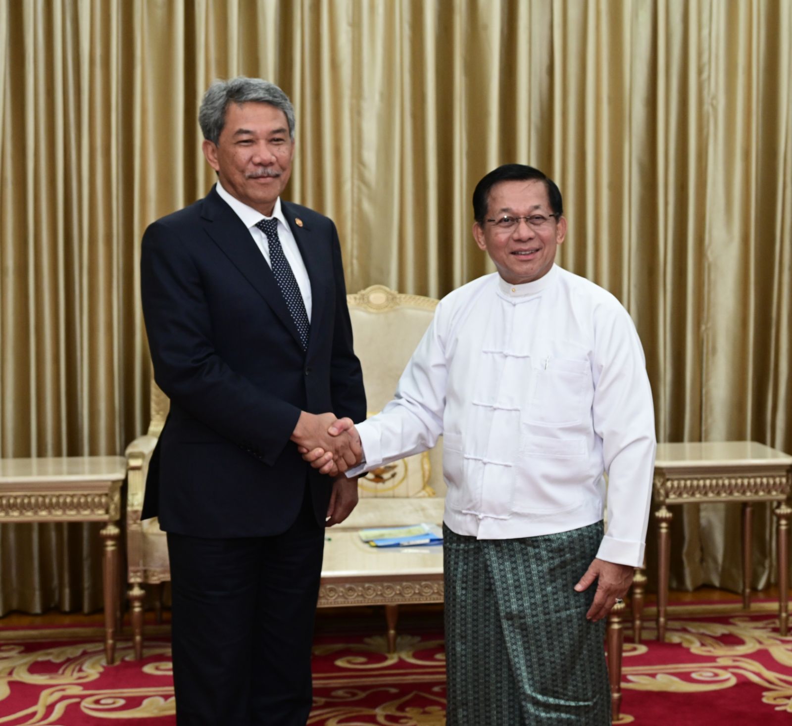 ပြည်ထောင်စုသမ္မတ မြန်မာနိုင်ငံတော်ယာယီသမ္မတ နိုင်ငံတော်လုံခြုံရေးနှင့်အေးချမ်းသာယာရေးကော်မရှင်ဥက္ကဋ္ဌ ဗိုလ်ချုပ်မှူးကြီးမင်းအောင်လှိုင်သည် မလေးရှားနိုင်ငံ၊ နိုင်ငံခြားရေးဝန်ကြီး H.E. Dato’ Seri Utama Haji Mohamad Bin Haji Hasan အား ယနေ့နံနက်ပိုင်းတွင် နေပြည်တော်ရှိ တပ်မတော်ဧည့်ဂေဟာ၌ လက်ခံတွေ့ဆုံသည်။