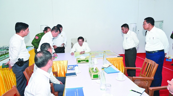 ထို့နောက် နိုင်ငံတော်ယာယီသမ္မတ နိုင်ငံတော်လုံခြုံရေးနှင့် အေးချမ်းသာယာရေး ကော်မရှင်ဥက္ကဋ္ဌ သည် ဒဂုံမြို့သစ်(အရှေ့ပိုင်း)မြို့နယ်၊ ဒဂုံမြို့သစ် (တောင်ပိုင်း) မြို့နယ်၊ သင်္ကန်းကျွန်းမြို့နယ်၊ သာကေတ မြို့နယ်၊ တာမွေမြို့နယ်၊ ဗဟန်းမြို့နယ်၊ ဒဂုံမြို့နယ်၊ ကမာရွတ်မြို့နယ်တို့အတွင်း မော်တော်ယာဉ်များဖြင့် လှည့်လည်ကြည့်ရှု စစ်ဆေးပြီး တာဝန်ရှိသူများအား လမ်းဘေးဝဲယာရှိ ဈေးဆိုင်များစနစ်တကျဖြင့် ရောင်းချနိုင်ရေး သတ်မှတ်စည်းကမ်းများနှင့်အညီ ကြပ်မတ်ဆောင်ရွက်သွားရန်၊ ရန်ကုန်မြို့အတွင်း ရေစီးရေလာများကောင်းမွန်စေရေးနှင့် ရေထုတ်စနစ်များ ကောင်းမွန်စေရေး ဆောင်ရွက်သွားရန်၊ Green Zone များအား စနစ်တကျ ဖော်ဆောင်သွားရန်နှင့် လမ်းများအား လမ်းအင်္ဂါရပ်များနှင့်အညီဖြစ်စေရေး ဆောင်ရွက်သွားရန်၊ အဆောက်အဦ များအားသန့်ရှင်းသပ်ရပ် တောက်ပြောင်မှုရှိနေစေရေး ဆောင်ရွက်သွားရန်နှင့်အခြားလိုအပ်သည်များကို လမ်းညွှန်မှာကြားခဲ့သည်။