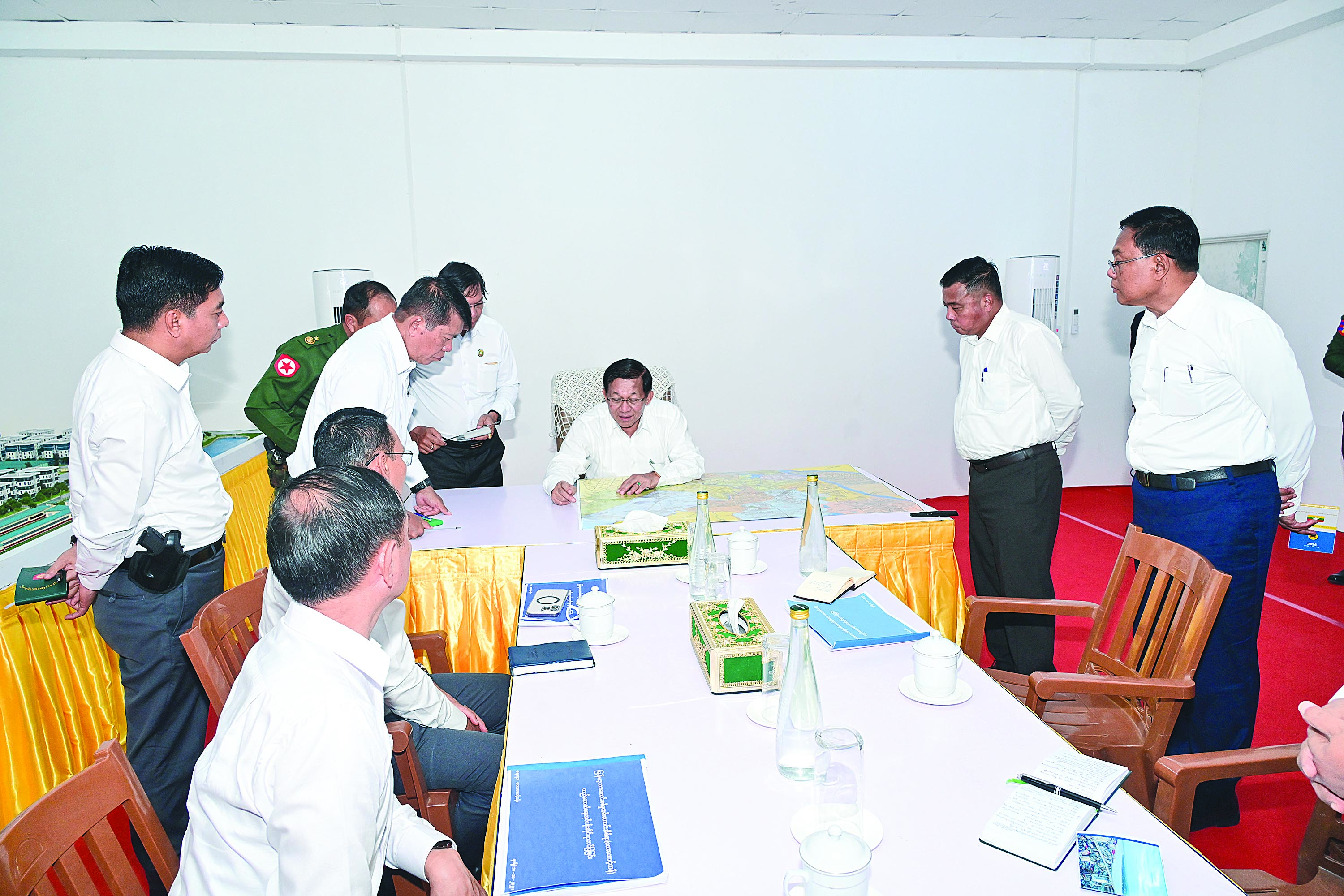 ၎င်းနောက် နိုင်ငံတော်ယာယီသမ္မတ နိုင်ငံတော်လုံခြုံရေးနှင့်အေးချမ်းသာယာရေးကော်မရှင်ဥက္ကဋ္ဌနှင့် အဖွဲ့ဝင်များသည် မြန်မာ့သားကောင်းအဆင့်မြင့် စစ်မှုထမ်းဟောင်းအိမ်ရာ(လေးထောင့်ကန်) အနီး ဘုရင့်နောင်လမ်းနှင့် အမှတ်(၇)လမ်းထောင့်နေရာတွင် တည်ဆောက်လျက်ရှိသည့် Shopping Complex လုပ်ငန်းခွင်သို့ ရောက်ရှိကြည့်ရှုစစ်ဆေးပြီး တာဝန်ရှိသူများ၏ တင်ပြချက်များအပေါ် လိုအပ်သည်များလမ်းညွှန် မှာကြားခဲ့သည်။