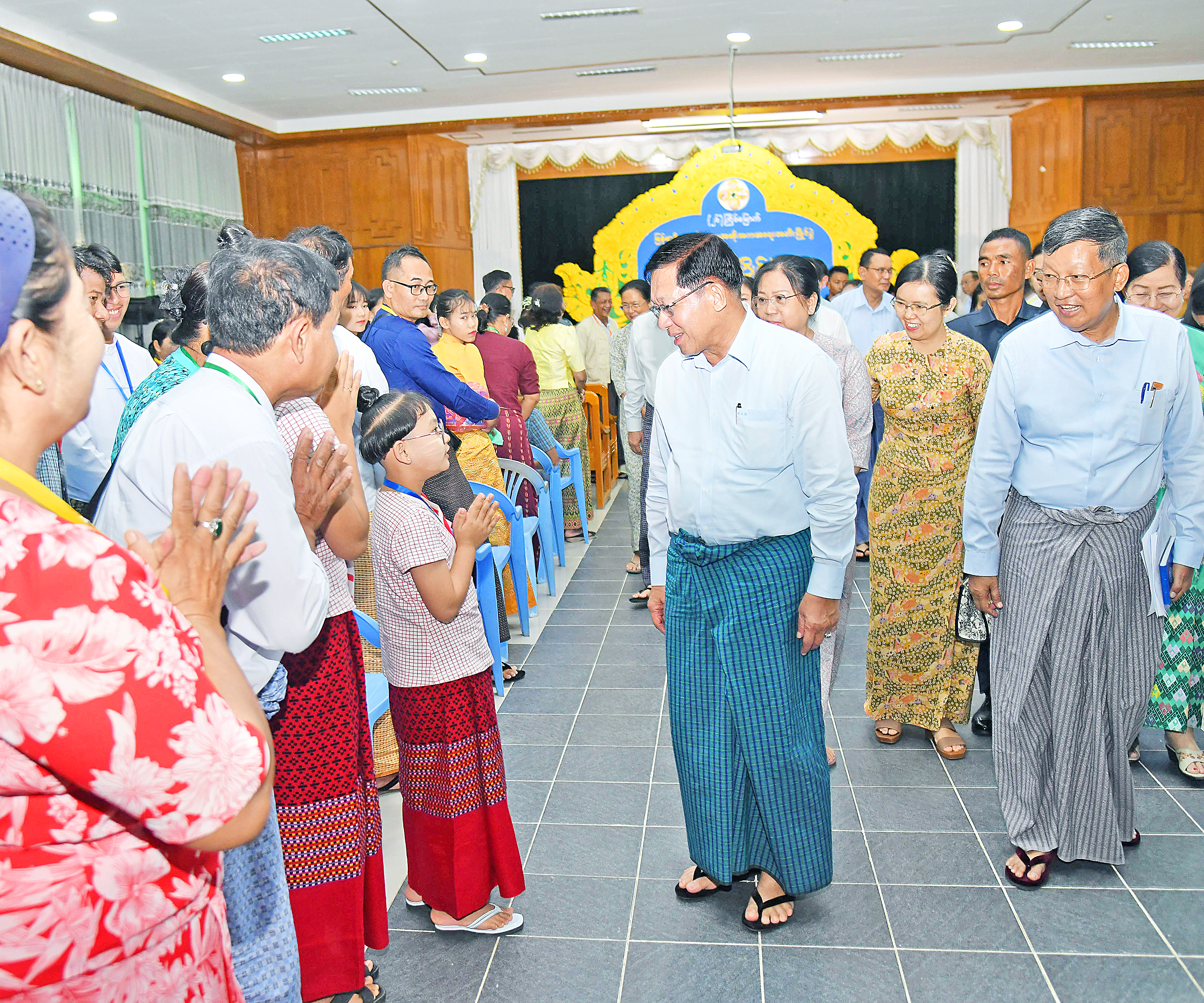 ယှဉ်ပြိုင်မှုအပြီးတွင် နိုင်ငံတော်ယာယီသမ္မတ နိုင်ငံတော်လုံခြုံရေးနှင့်အေးချမ်း သာယာရေးကော်မရှင်ဥက္ကဋ္ဌ နှင့်ဇနီးတို့သည် ပြိုင်ပွဲအဆင့်အလိုက် အကဲဖြတ်ဆောင်ရွက်ပေးနေသည့် အကဲဖြတ်ပညာရှင်များနှင့် ပြိုင်ပွဲဝင်များအား ရင်းရင်းနှီးနှီးနှုတ်ဆက်သည်။