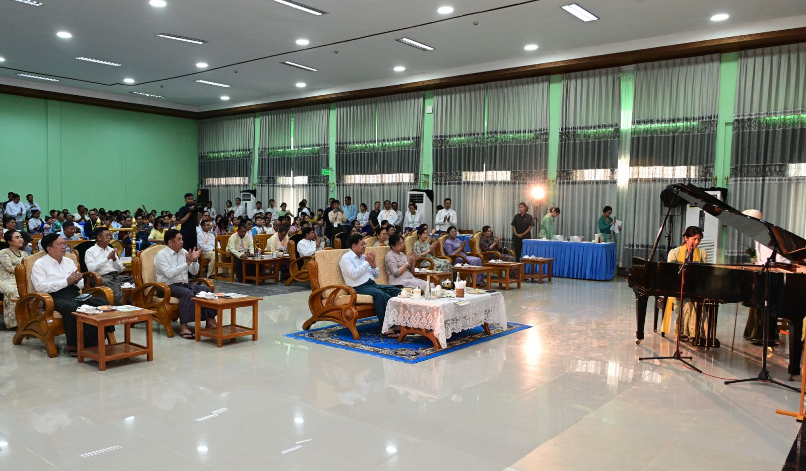 ထို့နောက် အမျိုးသားပြတိုက်(Mini Theatre) တွင် ကျင်းပပြုလုပ်လျက်ရှိသည့် အခြေခံပညာအဆင့် (အသက် ၁၅ နှစ်မှ ၂၀ နှစ်အတွင်း) အမျိုးသမီးစောင်းတီးပြိုင်ပွဲတွင်တိုင်းဒေသကြီးနှင့်ပြည်နယ်များအလိုက် ပြိုင်ပွဲဝင်များက လျှပ်ပန်းခွေနွဲ့(ယိုးဒယား) သီချင်းဖြင့် သာယာနာပျော်ဖွယ် တီးခတ်ယှဉ်ပြိုင်နေမှုကို ကြည့်ရှုအားပေးကြသည်။