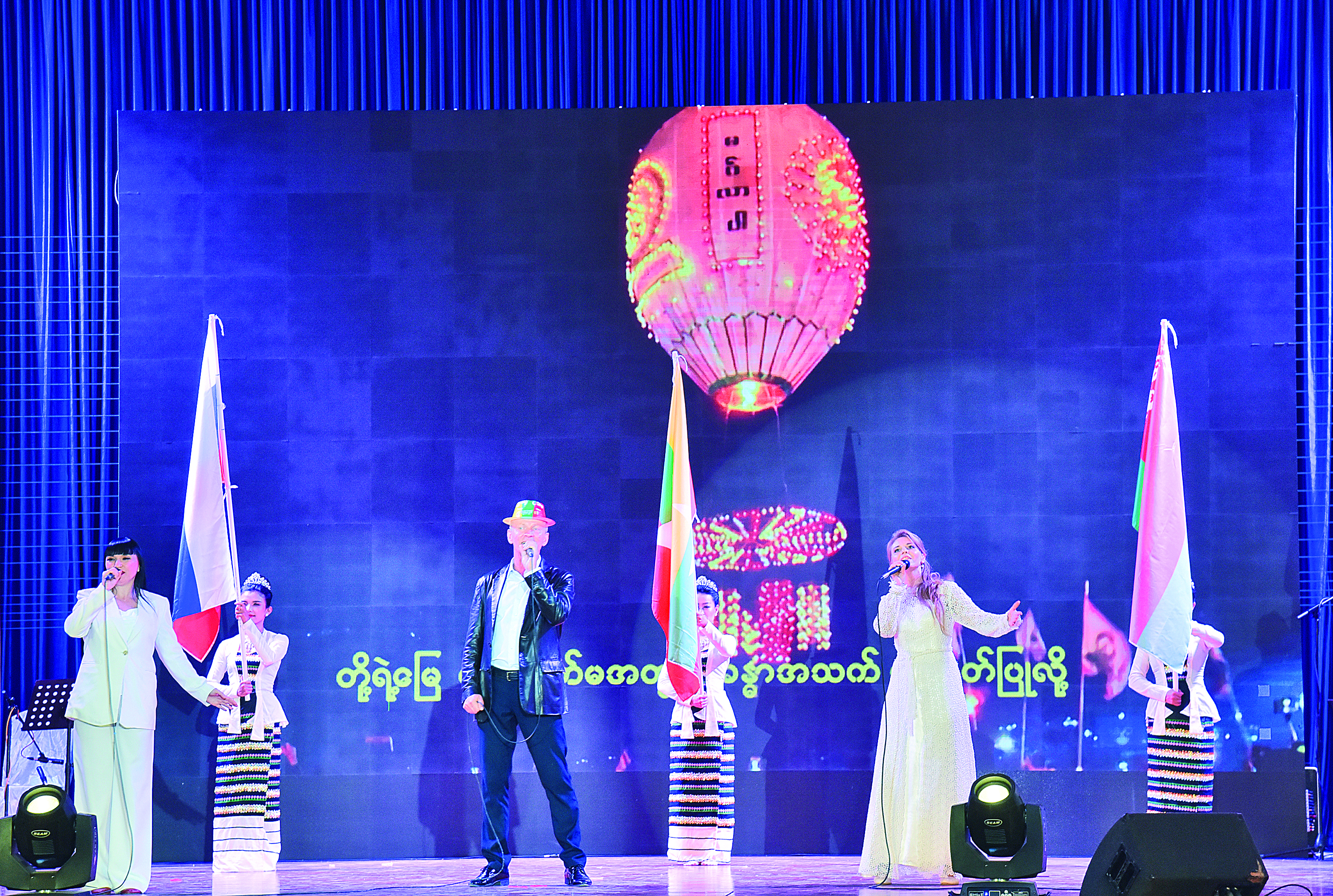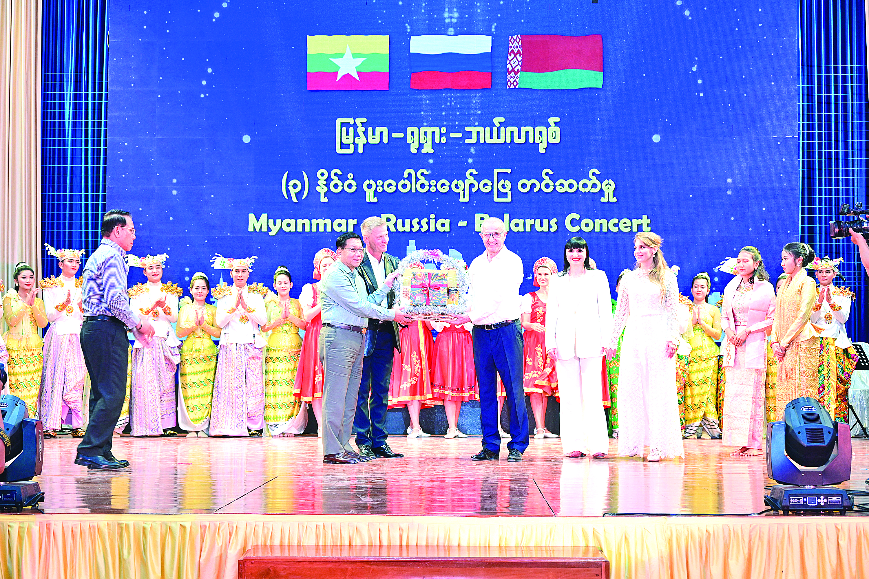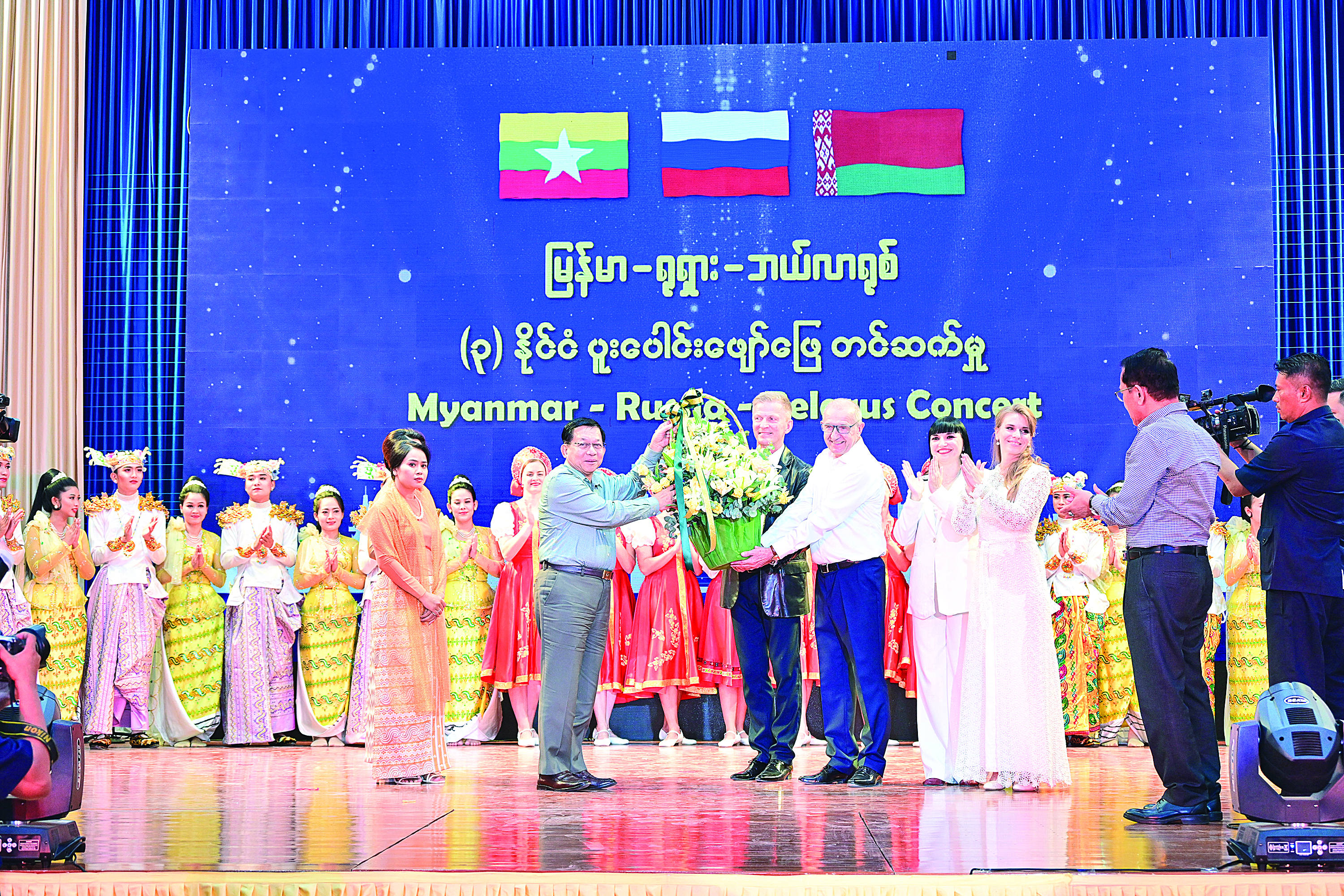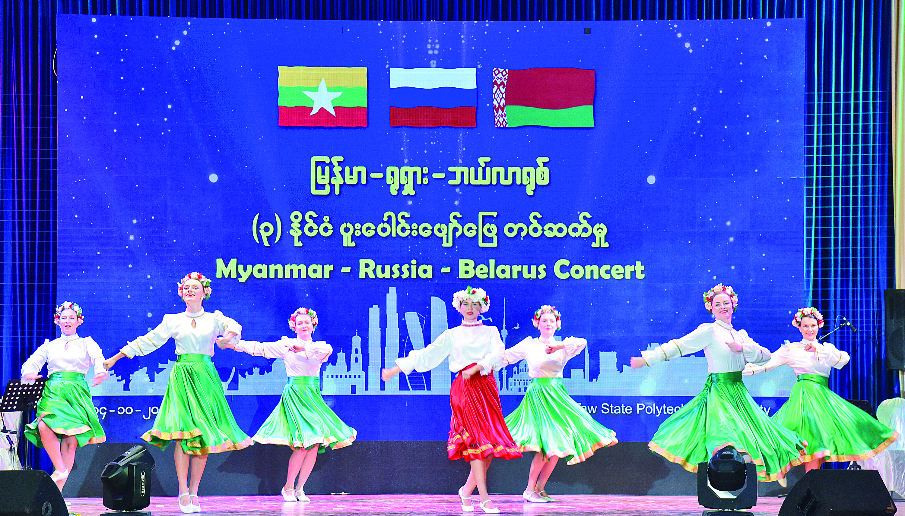ယင်းနောက် ဖျော်ဖြေရေးအစီအစဉ်အားစတင်ကျင်းပရာ ဘယ်လာရုစ်နိုင်ငံမှ အနုပညာရှင်များ၊ သာသနာရေးနှင့်ယဉ်ကျေးမှုဝန်ကြီးဌာန၊ အနုပညာဦးစီးဌာနမှအနုပညာရှင်ဝန်ထမ်းများ၊ ပြန်ကြားရေးဝန်ကြီးဌာန၊ မြန်မာ့အသံနှင့် ရုပ်မြင်သံကြားမှ အနုပညာရှင်ဝန်ထမ်းများ၊ ကာကွယ်ရေးဦးစီးချုပ်ရုံး(ကြည်း)၊ပြည်သူ့ဆက်ဆံရေးနှင့် စိတ်ဓာတ်စစ်ဆင်ရေးညွှန်ကြားရေးမှူးရုံးကွပ်ကဲမှုအောက် မြဝတီတေးဂီတအဖွဲ့မှ အနုပညာရှင်ဝန်ထမ်းများနှင့် မြန်မာနိုင်ငံဆိုင်ရာရုရှားဖက်ဒရေးရှင်းနိုင်ငံသံရုံးမှ ဝန်ထမ်းများက “ရုရှားနှင့်ဘယ်လာရုစ်-သွေးရင်းအစ်ကို ညီရင်းနှမ (Two Rus’s- Belarus and Russia, Two Sisters)”တေးသီချင်း၊ “ခေါင်းလောင်းသံ(Bells)” တေးသီချင်း၊ “နန်းသိင်္ဂီ”နန်းတွင်းယိမ်းအက၊ “The River Flows”တေးသီချင်း၊ “ဘော်ဒကာတစ်ခွက်နဲ့ နှုတ်ဆက်မယ်” တေးသီချင်း၊ “ပန်းပုသူဇာ” တေးသီချင်း၊ “မျက်ဝန်း(My eyes)” တေးသီချင်း၊ “လယ်ဘယ်ဒူးရှ်ကာ (Lebedushka)” အက၊ “မနောကြည်ချိုမြဗြောစည်တိုအက” ၊ “ကျူးလစ်ပန်း(Tulips)” တေးသီချင်း၊ “ဒို့ရွာနီ (Red Sloboda)” တေးသီချင်း၊ “မြိုင်ဆိုင်မြူးကြွမင်းသားအက”၊ “ဪတံစဉ် ကျွန်တော်တံစဉ်(Oh, My Scythe)” တေးသီချင်း၊ “ကာလင်ကာ(Kalinka)” အက၊ “Belarus and Myanmar” တေးသီချင်း၊ “မြန်မာ”တေးသီချင်း၊ “သင်္ကြန်”တေးသီချင်း၊ “Kupalinka” တေးသီချင်း၊ “St. Petersburg and Myanmar”တေးသီချင်း၊ “ပုဂံ” တေးသီချင်း၊ “အတူရှိမယ်မြန်မာ(We are With You Myanmar)” တေးသီချင်း၊ “မြန်မာဟေ့” တေးသီချင်း၊ “ကာကျူးရှာ(Katush)” တေးသီချင်း၊ “အမိမြေ(Matushka Zemnya Mother Land)” တေးသီချင်း၊ “Love Me”တေးသီချင်း၊ “ပန်းရောင်စုံ (All the Flowers)” တေးသီချင်းနှင့် “တောင်းဆုခြွေ( I want to wish)”တေးသီချင်းတို့ဖြင့် သီဆိုတီးမှုတ်ကပြဖျော်ဖြေတင်ဆက်ကြသည်။
