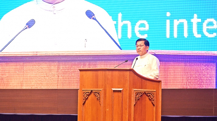ကျွန်တော့်အနေနဲ့ နိုင်ငံတော်တာဝန်များကို စတင်တာဝန်ယူချိန်ကစပြီး “တိုင်းပြည်သာယာဝပြောရေးနဲ့ စားရေရိက္ခာဖူလုံရေး”ဆိုတဲ့အမျိုးသားရေးရည်မှန်းချက် (၂)ရပ်နဲ့ “စစ်မှန်စည်းကမ်းပြည့်ဝတဲ့ပါတီစုံဒီမိုကရေစီစနစ် ခိုင်မာစေရေးနဲ့ ဒီမိုကရေစီနဲ့ ဖက်ဒရယ်စနစ်ကိုအခြေခံတဲ့ ပြည်ထောင်စုတည်ဆောက်ရေး”ဆိုတဲ့ နိုင်ငံရေးရည်မှန်း ချက်၂ ရပ်ကို ချမှတ်အကောင်ဖော် ဆောင်ရွက်လျက်ရှိပါတယ်။ ကျွန်တော်တို့နိုင်ငံဟာ တိုင်းရင်းသားလူမျိုးစုမြောက်မြားစွာရှိတဲ့ပြည်ထောင်စုနိုင်ငံဖြစ်တဲ့အတွက်တိုင်းရင်းသားလူမျိုးများအားလုံးရဲ့သွေးစည်းညီညွတ်ရေးကို တည်ဆောက်နိုင်မှသာလျှင် တိုင်းရင်းသား လူမျိုးအားလုံးကောင်းစားရေးအတွက်အာမခံနိုင်တဲ့ နိုင်ငံတော်ကိုထူထောင်နိုင်မှာဖြစ်ပါတယ်။