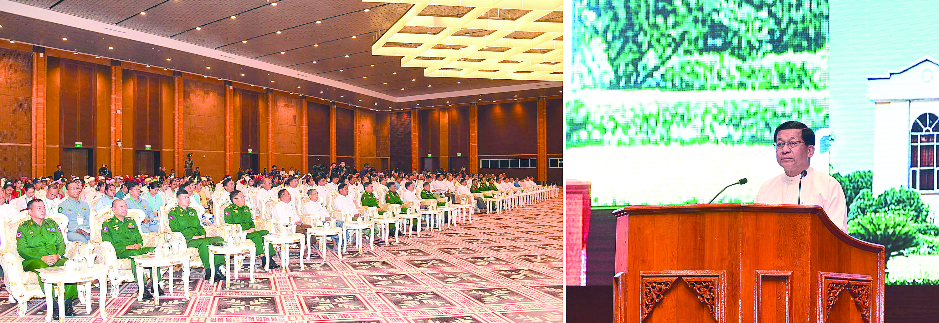 နိုင်ငံတစ်နိုင်ငံဖွံ့ဖြိုးတိုးတက်မှု၏အခြေခံ အုတ်မြစ်သည် ပညာတတ်အရင်းအမြစ်များပေါများခြင်းပင်ဖြစ်ကြောင်း၊ နိုင်ငံတော် အနေဖြင့်လည်း အသိပညာ၊ အတတ်ပညာ ပြည့်စုံသည့် ပညာတတ်များဖြင့် သာယာဝပြောသည့် အနာဂတ်နိုင်ငံတော်ကြီးကို တည်ဆောက်ရန်ဦးတည်ဆောင်ရွက်လျက်ရှိပြီး အရည်အသွေးပြည့်ဝသည့် ဘက်စုံပညာရေးစနစ်တိုးတက်ဖြစ်ပေါ်ရေးကိုလည်း ကြိုးပမ်းဆောင်ရွက်လျက်ရှိကြောင်း၊ မိမိတို့ နိုင်ငံတွင်ပညာရေးနှင့်ပတ်သက်ပါက အားနည်းချက်ရှိခဲ့ခြင်းကြောင့် ဒေသအချို့တွင် ဖွံ့ဖြိုးတိုးတက်မှုများနောက်ကျနေခြင်းကိုလည်း တွေ့မြင်နေရမည်ဖြစ်ကြောင်း၊ထို့ကြောင့် အမျိုးသားကာကွယ်ရေးနှင့် လုံခြုံရေးကောင်စီအနေဖြင့် “နိုင်ငံတော် စဉ်ဆက်မပြတ်ဖွံ့ဖြိုးတိုးတက်ခိုင်မာစေရေးအတွက် အမျိုးသားပညာရေးကဏ္ဍ၊ ကျန်းမာရေးကဏ္ဍတို့ကို အလေးထားမြှင့်တင်ရေး” ဆိုသည့်ဦးတည်ချက်ချမှတ်ပြီး ပညာရေးကဏ္ဍတွင် တစ်နိုင်ငံလုံးအတိုင်းအတာအနေဖြင့် ဖွံ့ဖြိုးတိုးတက်အောင်ဆောင်ရွက် လျက်ရှိကြောင်း။