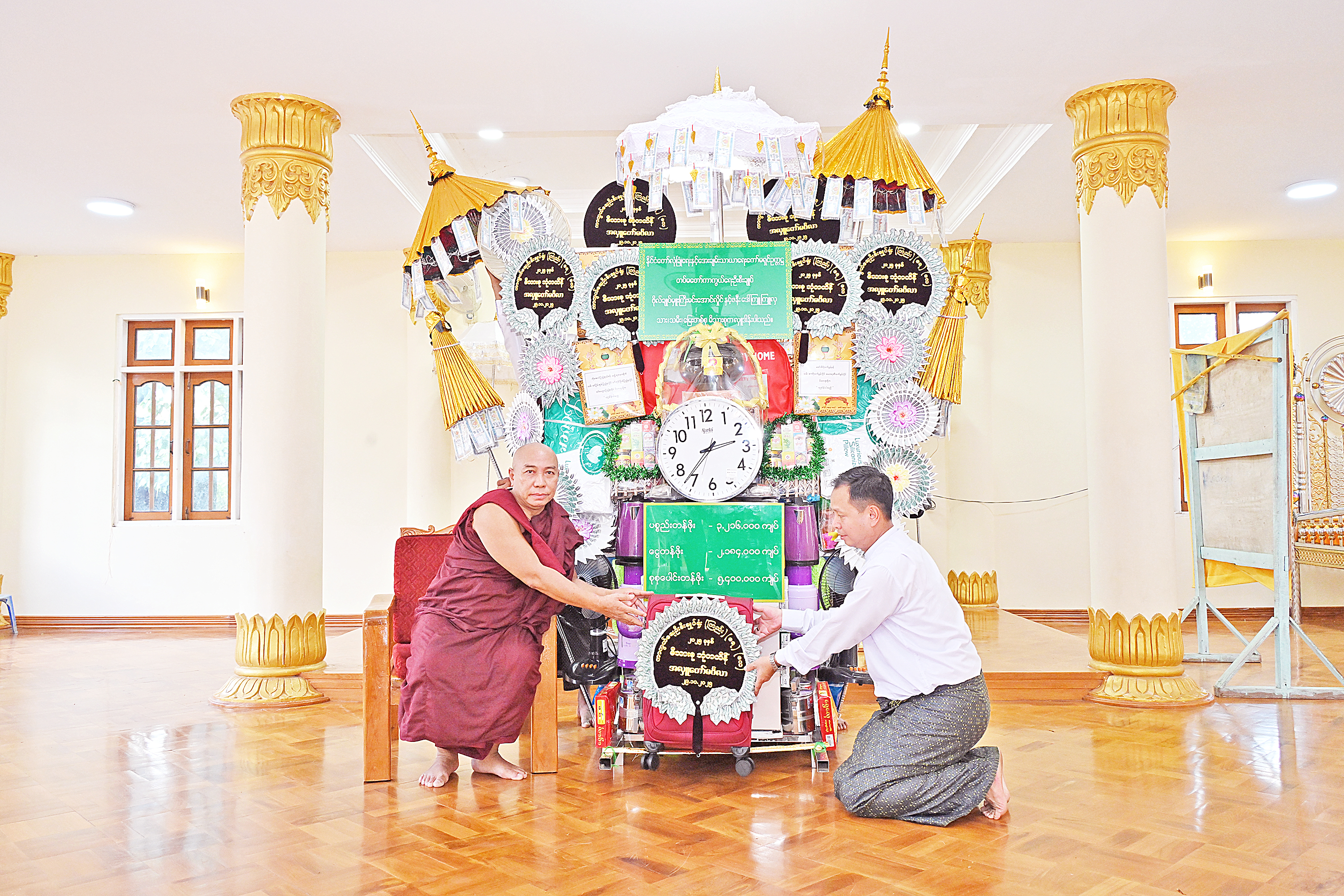 ထို့နောက် ကော်မရှင်ဒုတိယဥက္ကဋ္ဌဒုတိယတပ်မတော်ကာကွယ်ရေးဦးစီးချုပ် ကာကွယ်ရေးဦးစီးချုပ်(ကြည်း)နှင့်ဇနီးတို့က နိုင်ငံတော်သံဃမဟာနာယကအဖွဲ့ အကျိုး တော်ဆောင် မန္တလေးမြို့၊ မစိုးရိမ်တိုက်သစ် ဆရာတော်ကြီးထံ ကထိန်သင်္ကန်းနှင့် လှူဖွယ်ပစ္စည်းများကို ဆက်ကပ်လှူဒါန်းသည်။