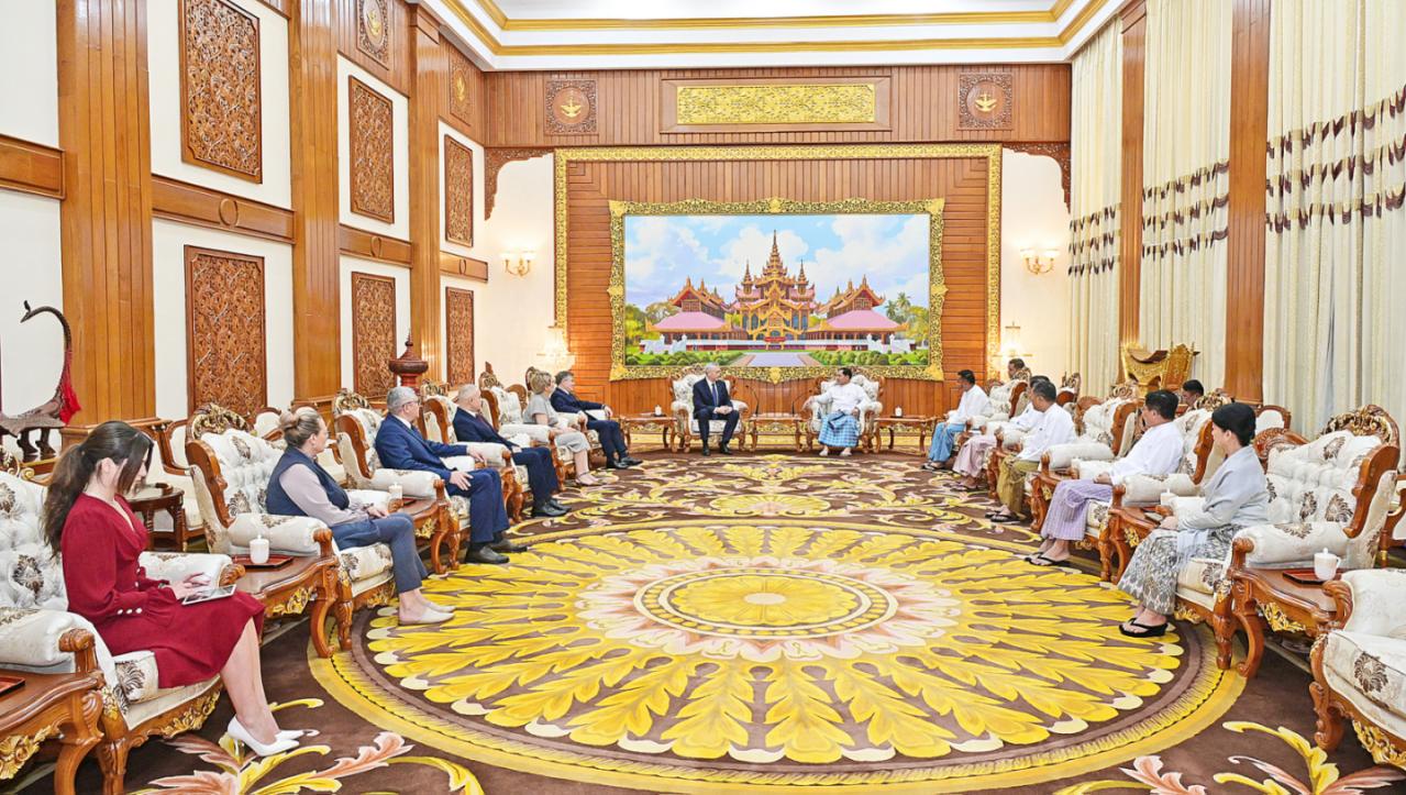 ပြည်ထောင်စုသမ္မတမြန်မာနိုင်ငံတော် ယာယီသမ္မတ နိုင်ငံတော်လုံခြုံရေးနှင့်အေးချမ်းသာယာရေးကော်မရှင်ဥက္ကဋ္ဌ ဗိုလ်ချုပ်မှူးကြီးမင်းအောင်လှိုင်ထံသို့ ရုရှားဖက်ဒရေးရှင်းနိုင်ငံ၊ နိုဗိုစီဗစ်ဒေသအုပ်ချုပ်ရေးမှူး H.E.Mr. Andrey Aleksandrovich Travnikov ဦးဆောင်သောကိုယ်စားလှယ်အဖွဲ့က ယနေ့နံနက်ပိုင်းတွင် လာရောက်ဂါရဝပြုတွေ့ဆုံသည်။